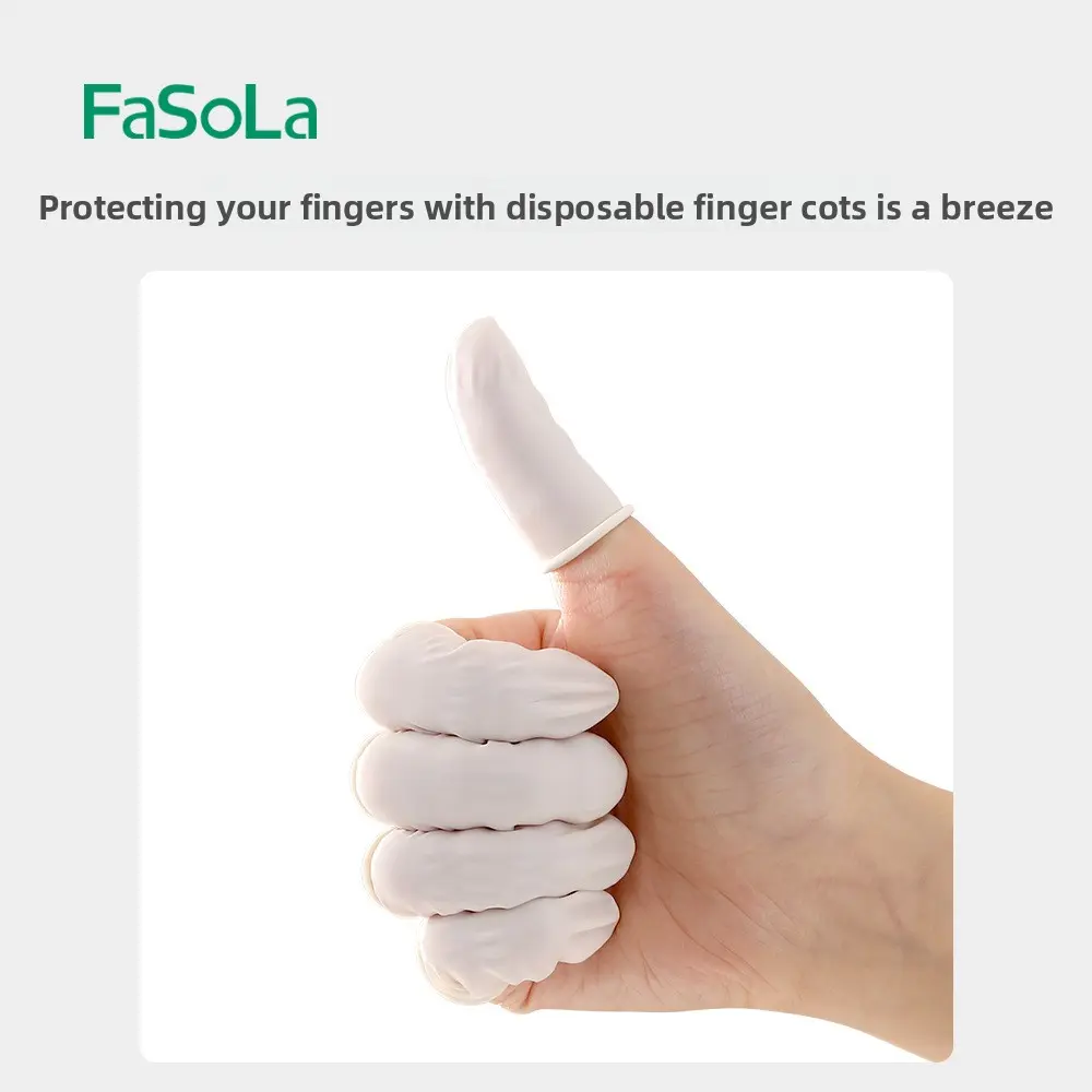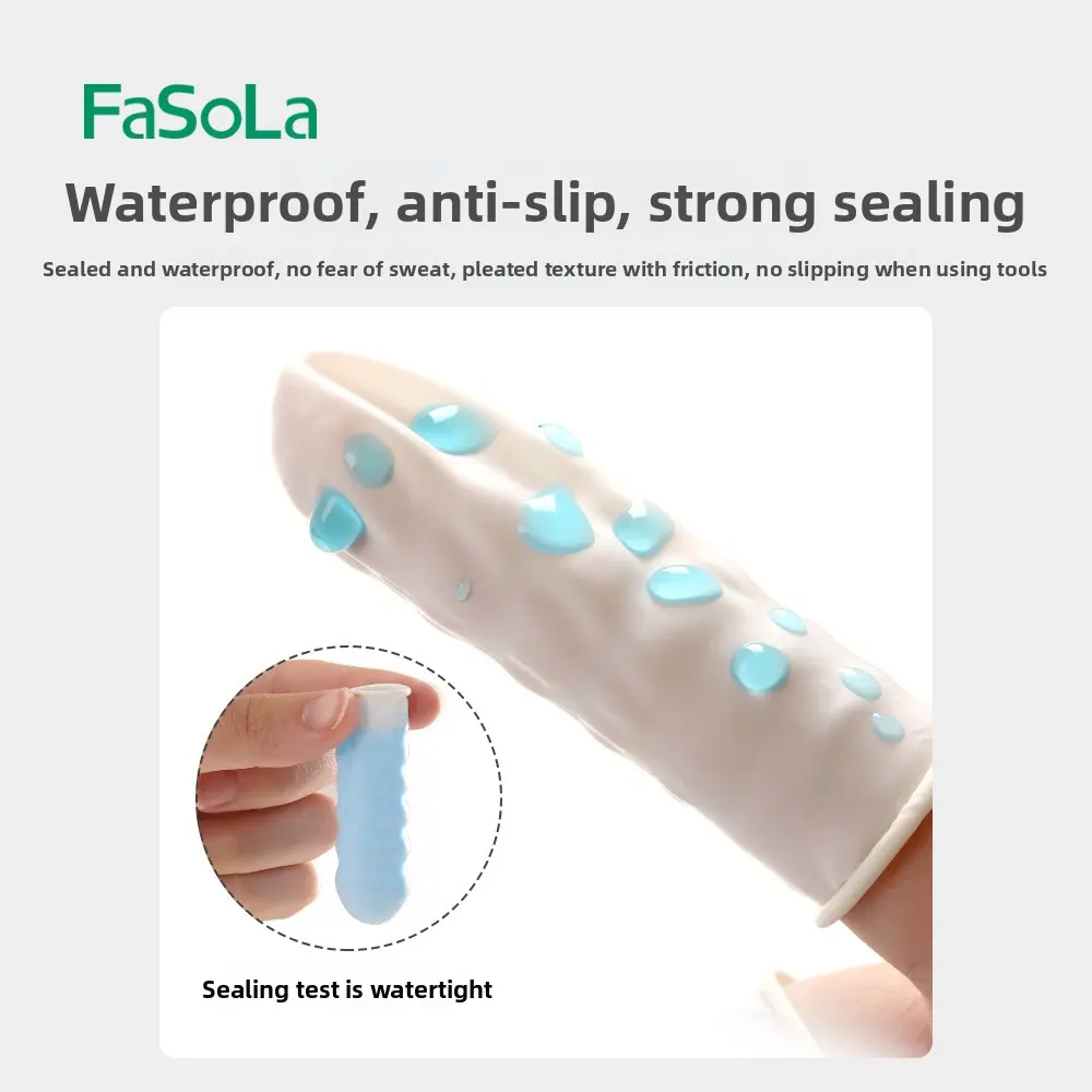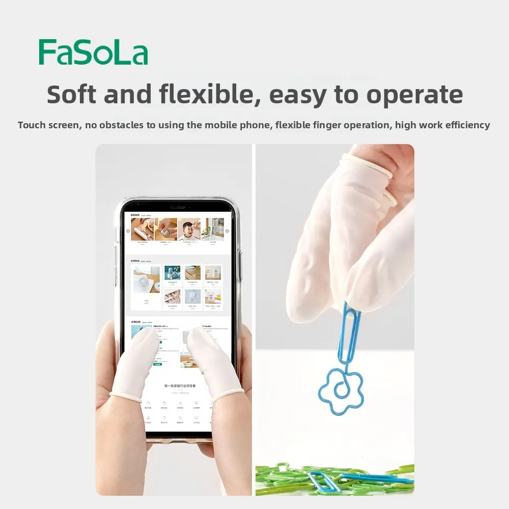 FaSoLa disposable rubber finger covers are non-slip, wear-resistant, and provide hand protection. They are highly elastic and allow touch-screen use, offering flexible dexterity