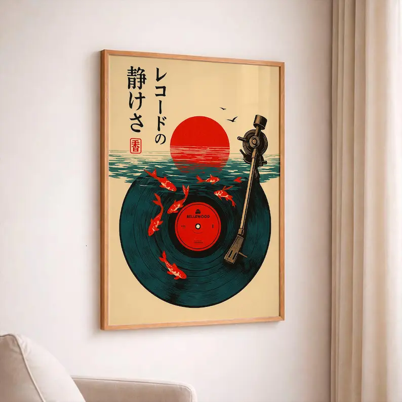 [Sale up to 50%] [Free Ship] Japanese Retro Wall Poster, Vintage Music Print, Japanese Wall Art, Vinyl Art