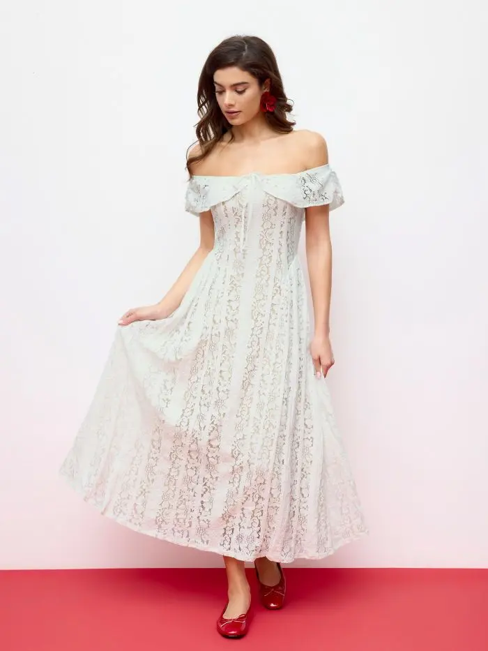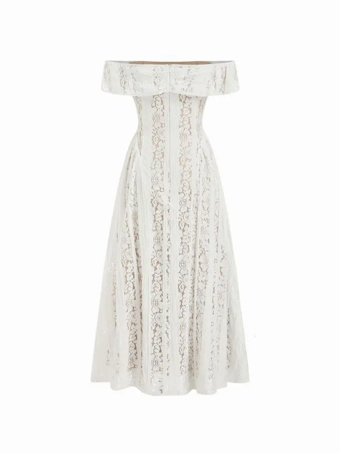 Exceptional Off-The-Shoulder Flared Midi Dress