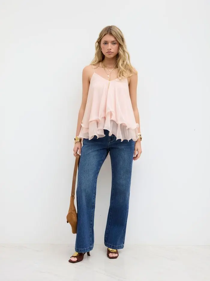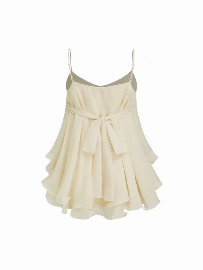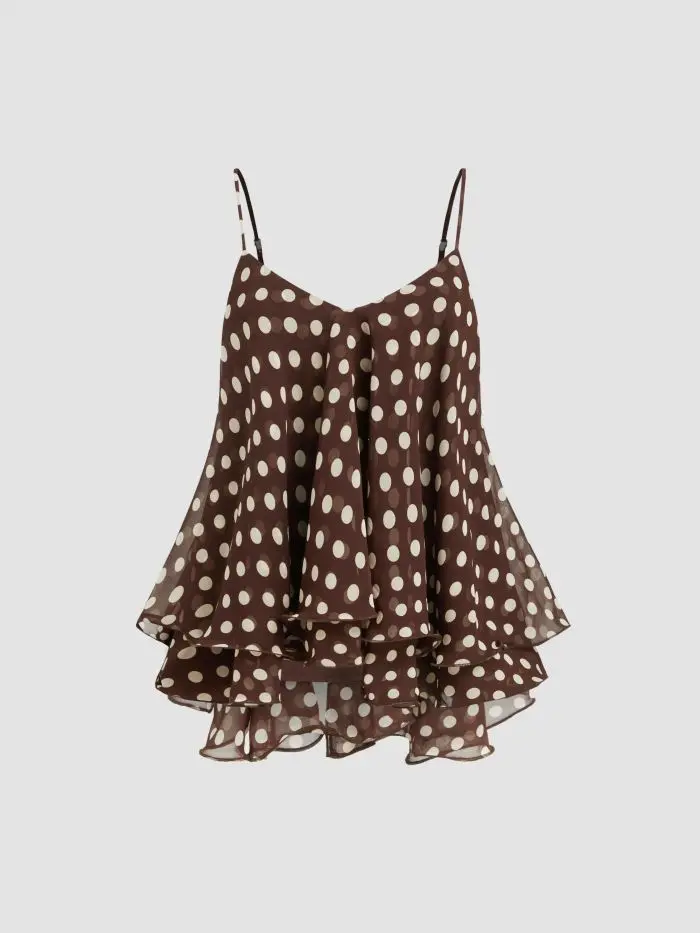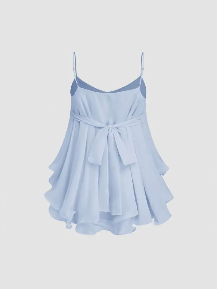 Ruffle Hem Knotted Layered Mesh Cami Top