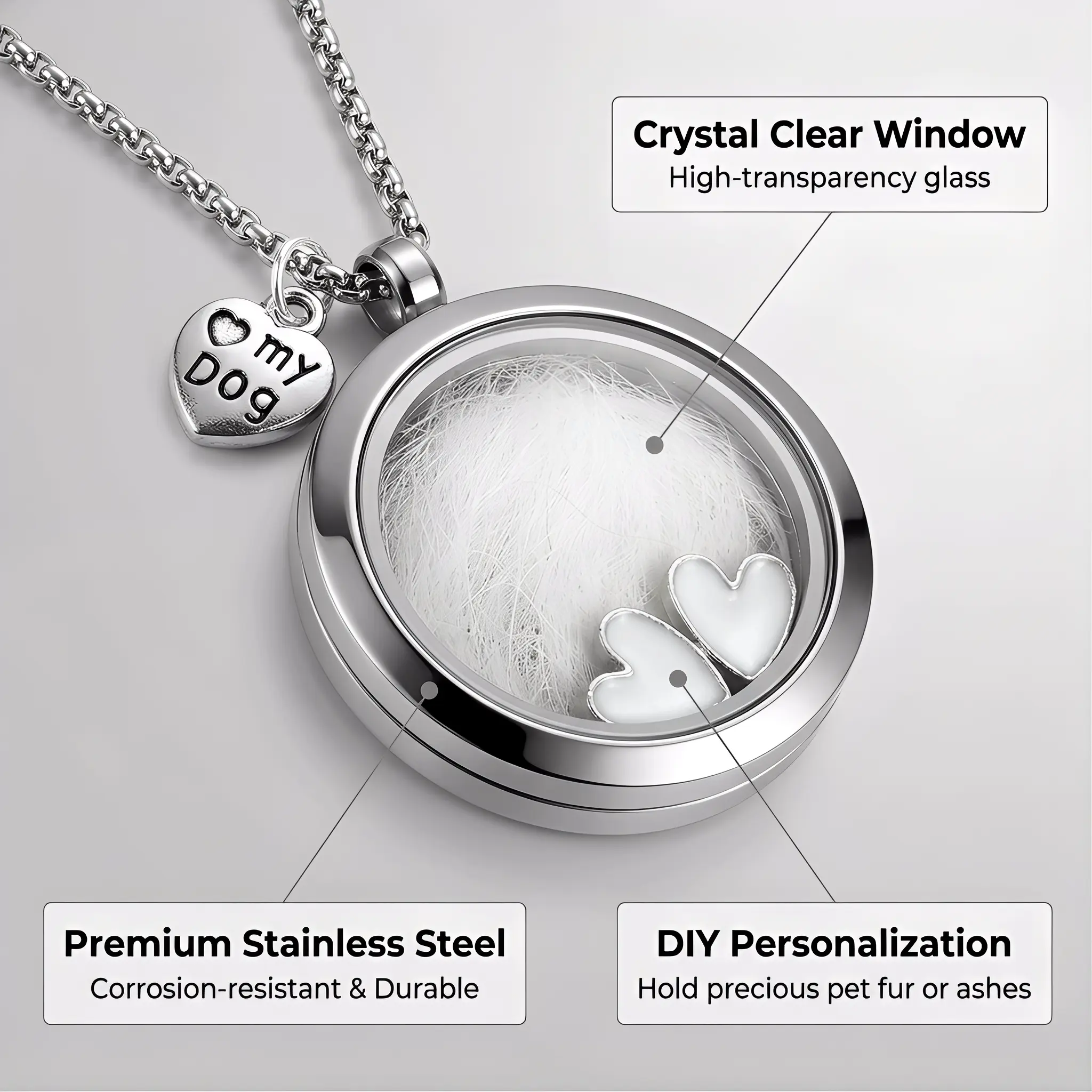·Optional "my dog"/"my cat" heart charm for personalization