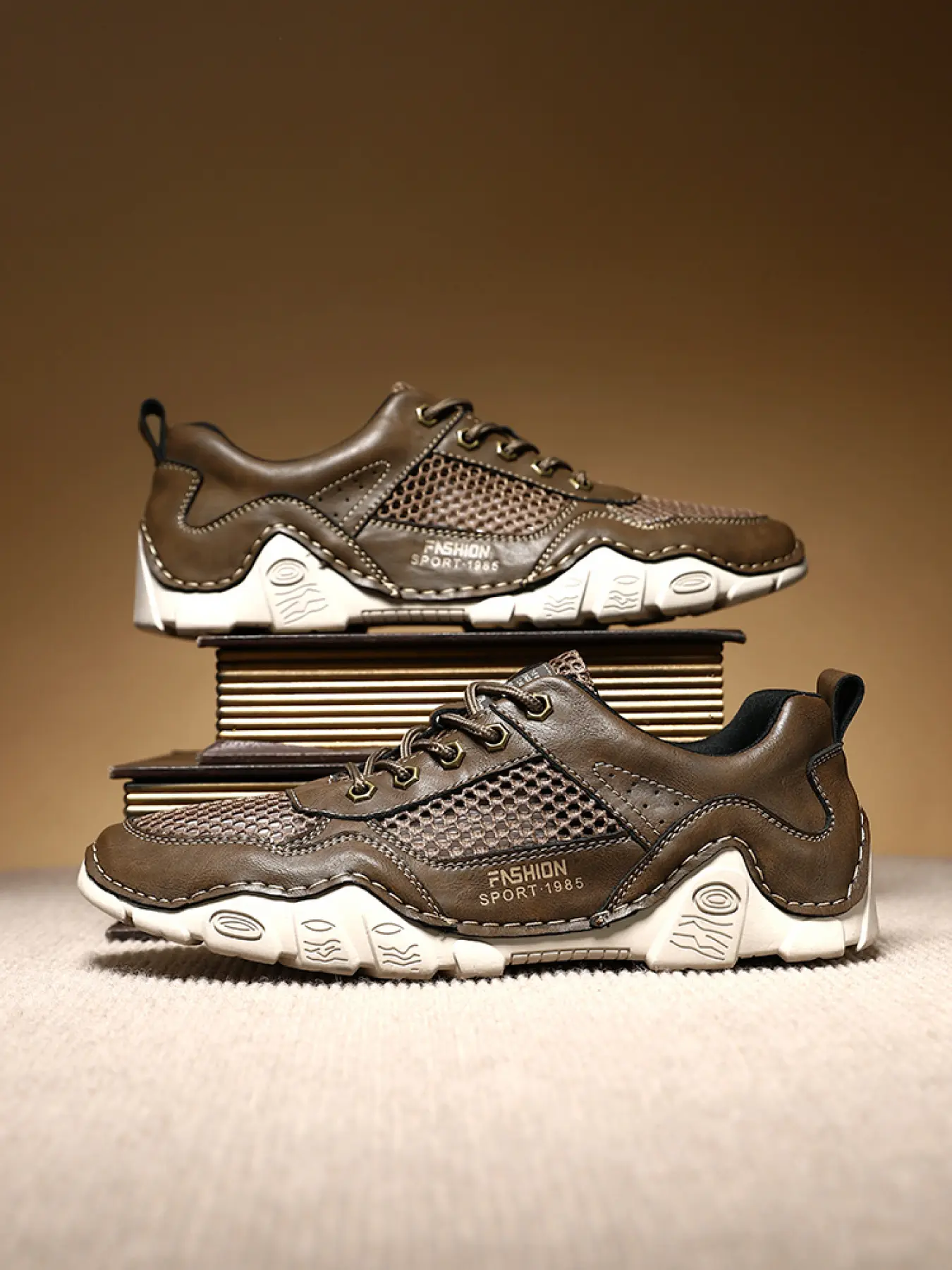 Men's Solid Color Mesh Patchwork Casual Sneakers, Hand-Stitched Thick-Soled Non-Slip Hiking Shoes, Trendy Versatile Breathable Dad Shoes