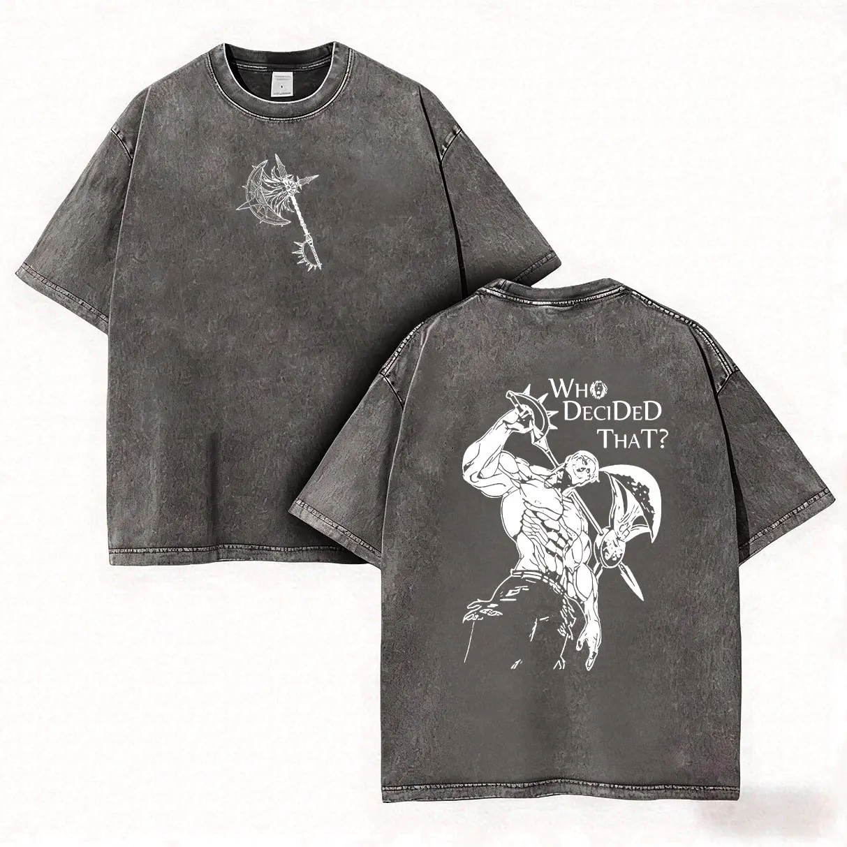 Seven Deadly Sins Escanor Oversized Tee - "Who Decided That" Pride Sin Retro Graphic Heavy Cotton Unisex Anime Streetwear Gift For Fans