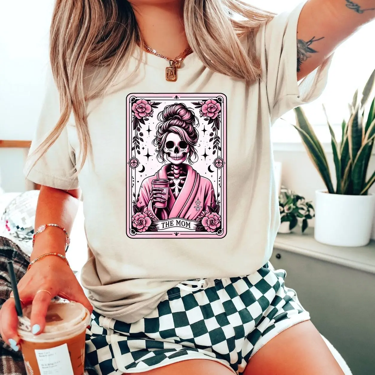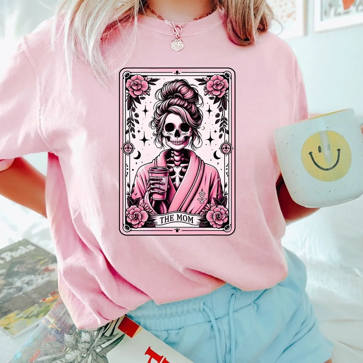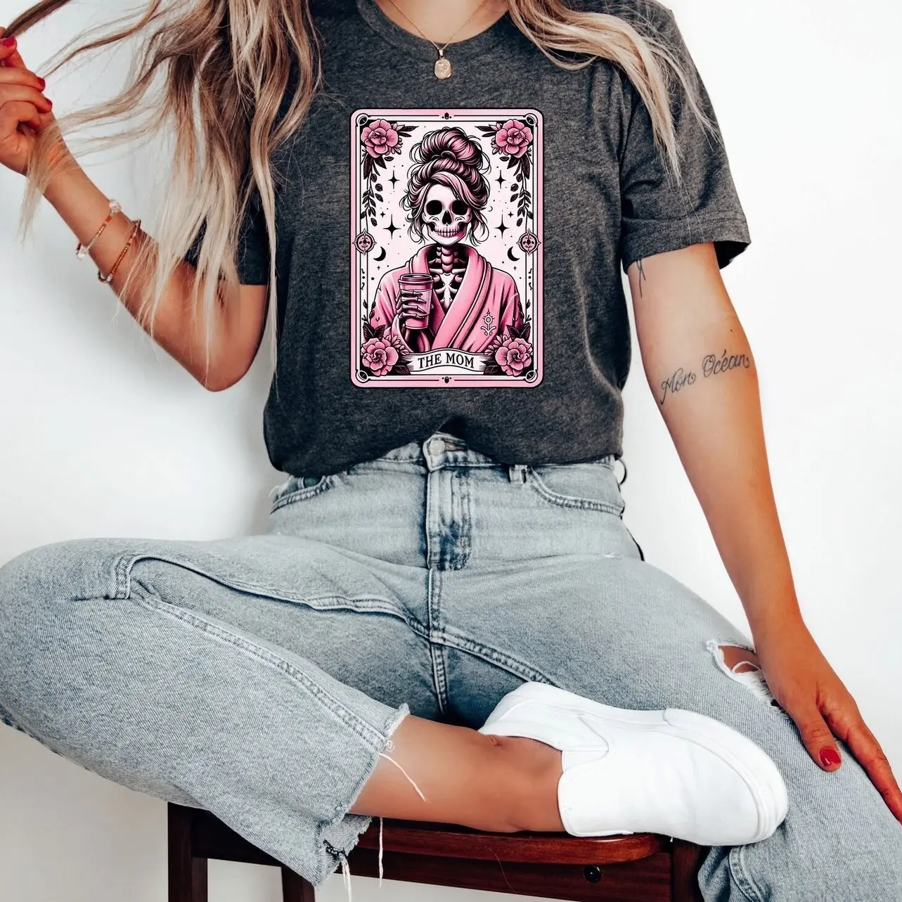 The Mom Funny Tarot Card Shirt, Woman Skeleton Mother's Day T Shirt, Witchy Vibes Skull Mama T-Shirt, Funny Mom Meme Shirt, Floral Mom Shirt P