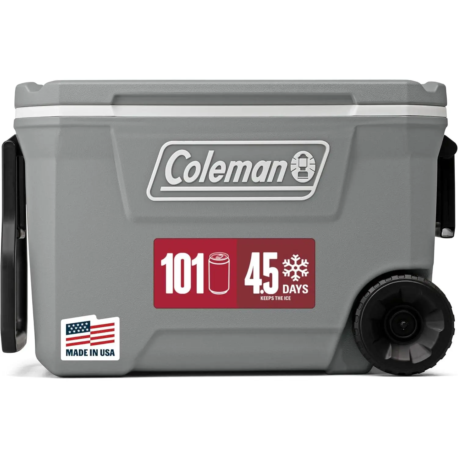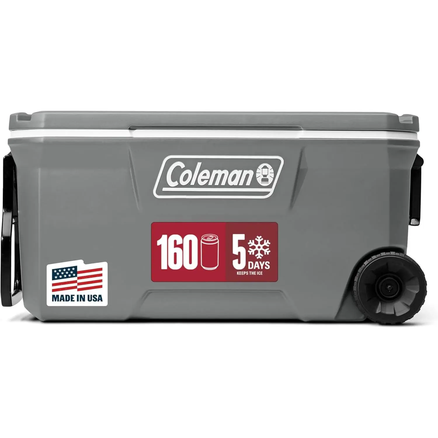 Inspired by our Wichita roots and built by the people at the heart of what we do, the Coleman 316 Series of hard coolers delivers uncompromising quality for every outdoor adventure. The Coleman 316 Series 100-Quart Wheeled Cooler has all the features you'll need for the outdoors from tailgating with friends to annual camping trips. The fully insulated lid and body Keeps the Ice for up to 5 days in temperatures as high as 90 ° F so you can enjoy cold drinks at the campsite after hiking the trails or cooking hearty meals. Going to the beach? The heavy-duty 6-inch wheels and durable tow & swing-up handles help you haul a full load while staking out the perfect spot. Drinks are always within reach and don't spill because of the cup holders molded to the lid. If more guests swing by the tailgate or picnic, you've got an extra seat with the Have-A-Seat lid that supports up to 250 lbs. The large capacity fits up to 160 cans so you'll have plenty of drinks for you, your crew, and anyone else who wants to join in on the fun.
