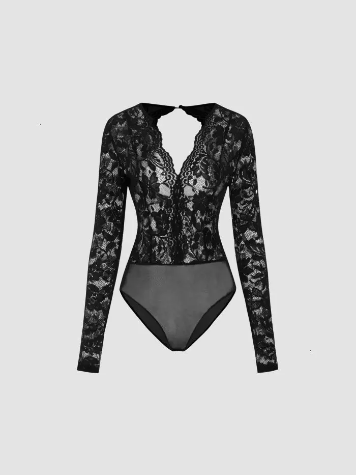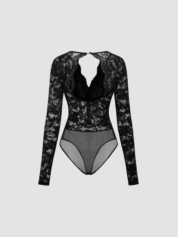 Sheer Lace Open Back Bodysuit