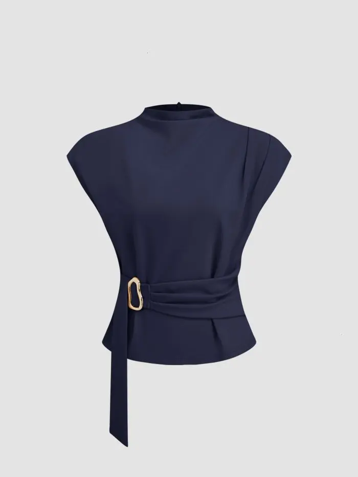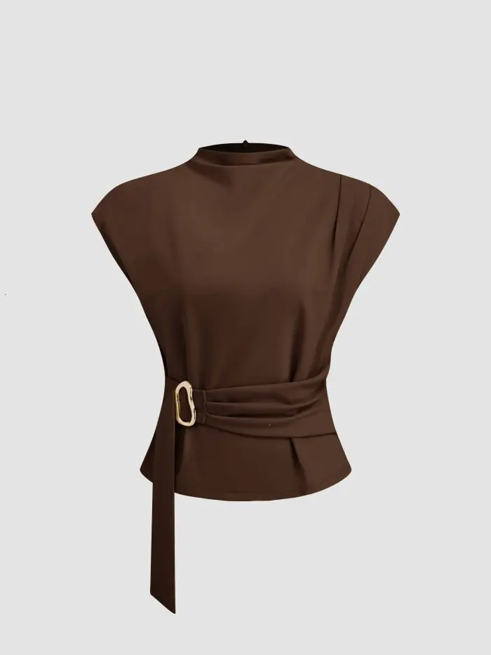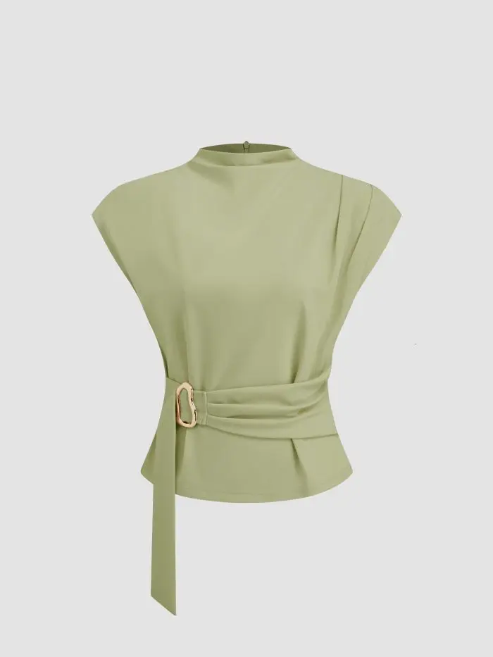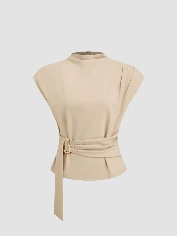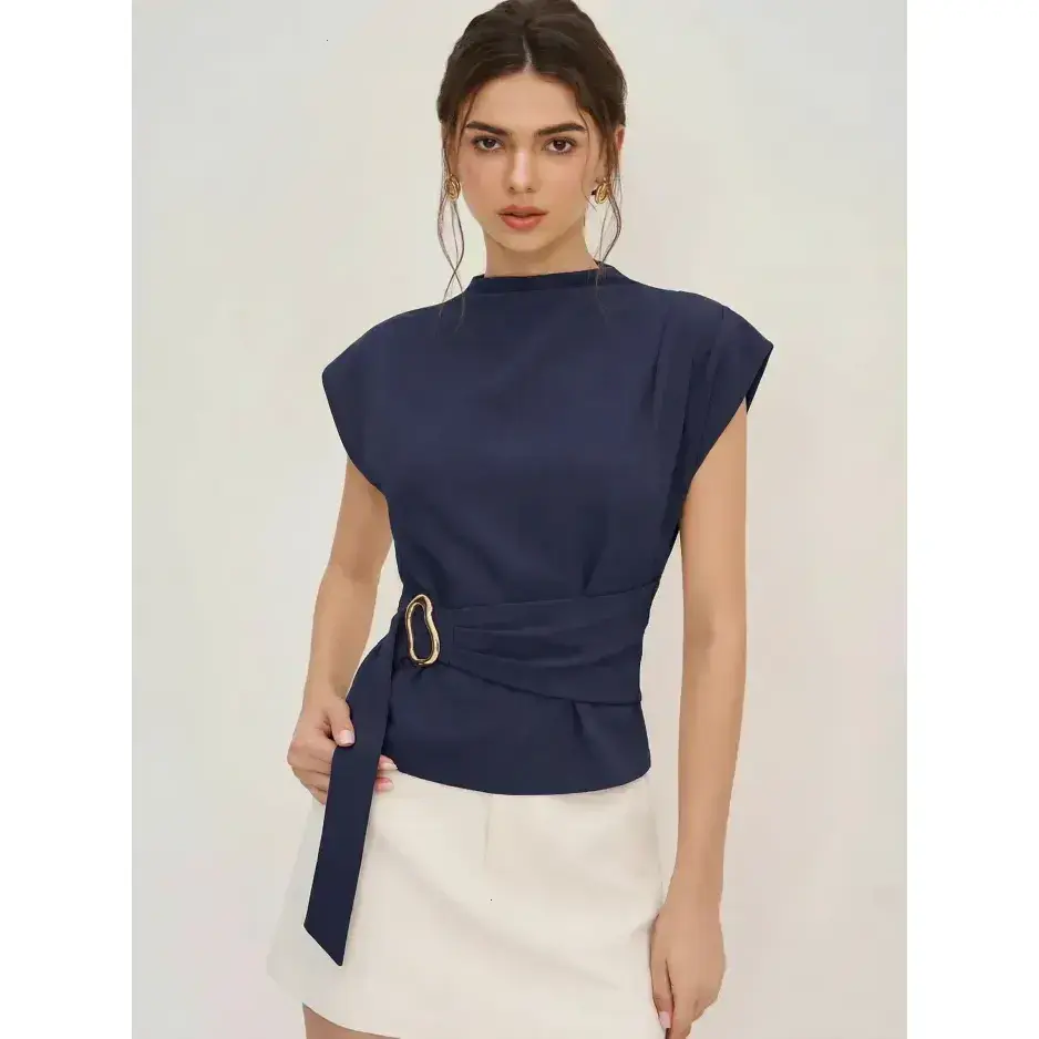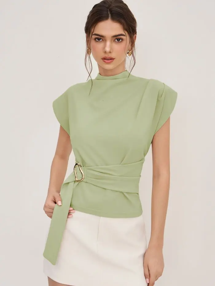 Square Neck Solid Ruffle Knotted Short Sleeve Blouse