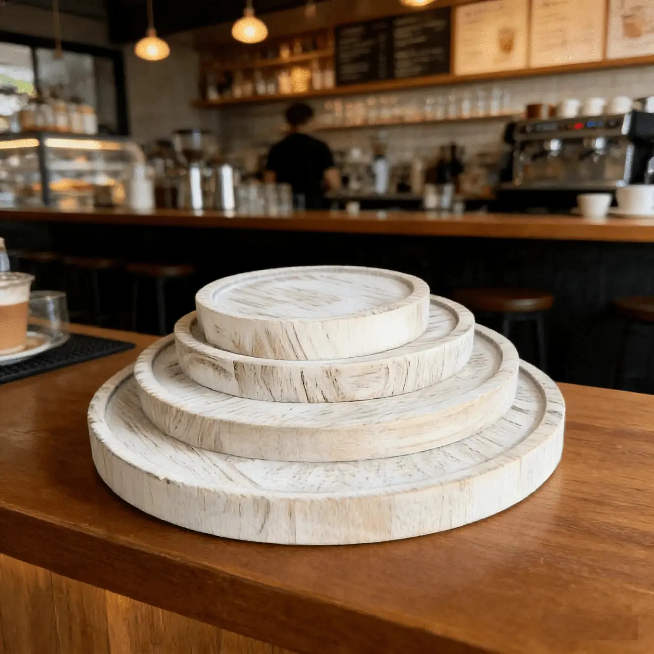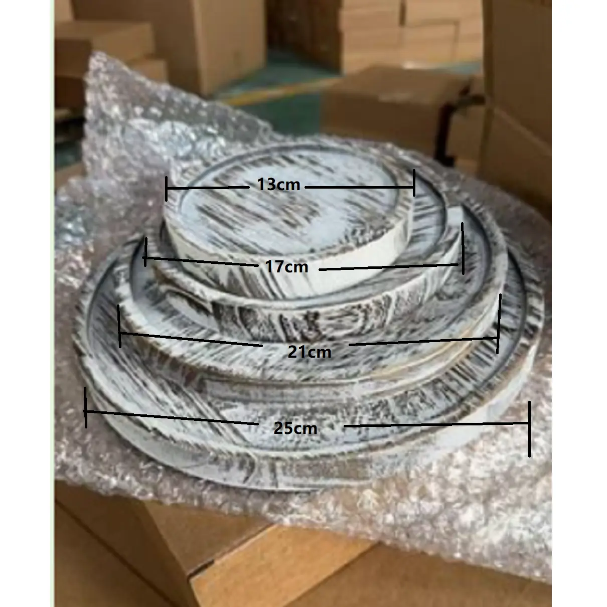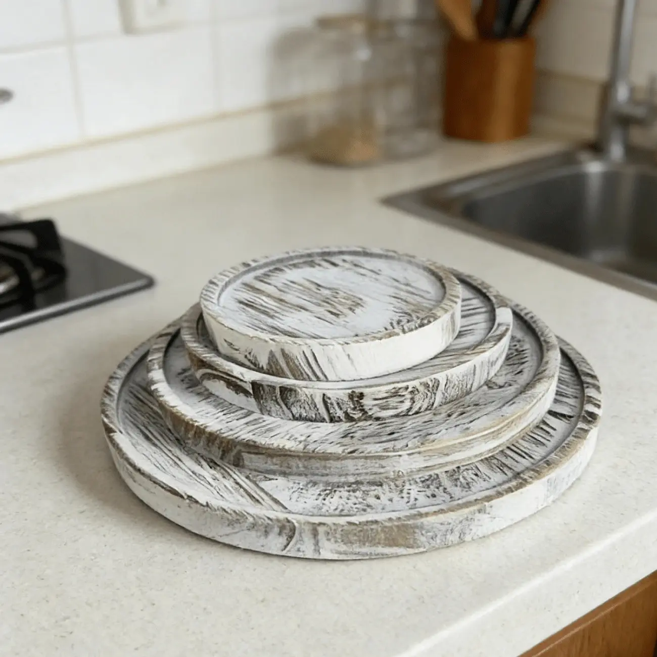 Elevate your space with this chic distressed white round wood tray set!Rustic farmhouse charm for coffee tables & kitchen decor✨