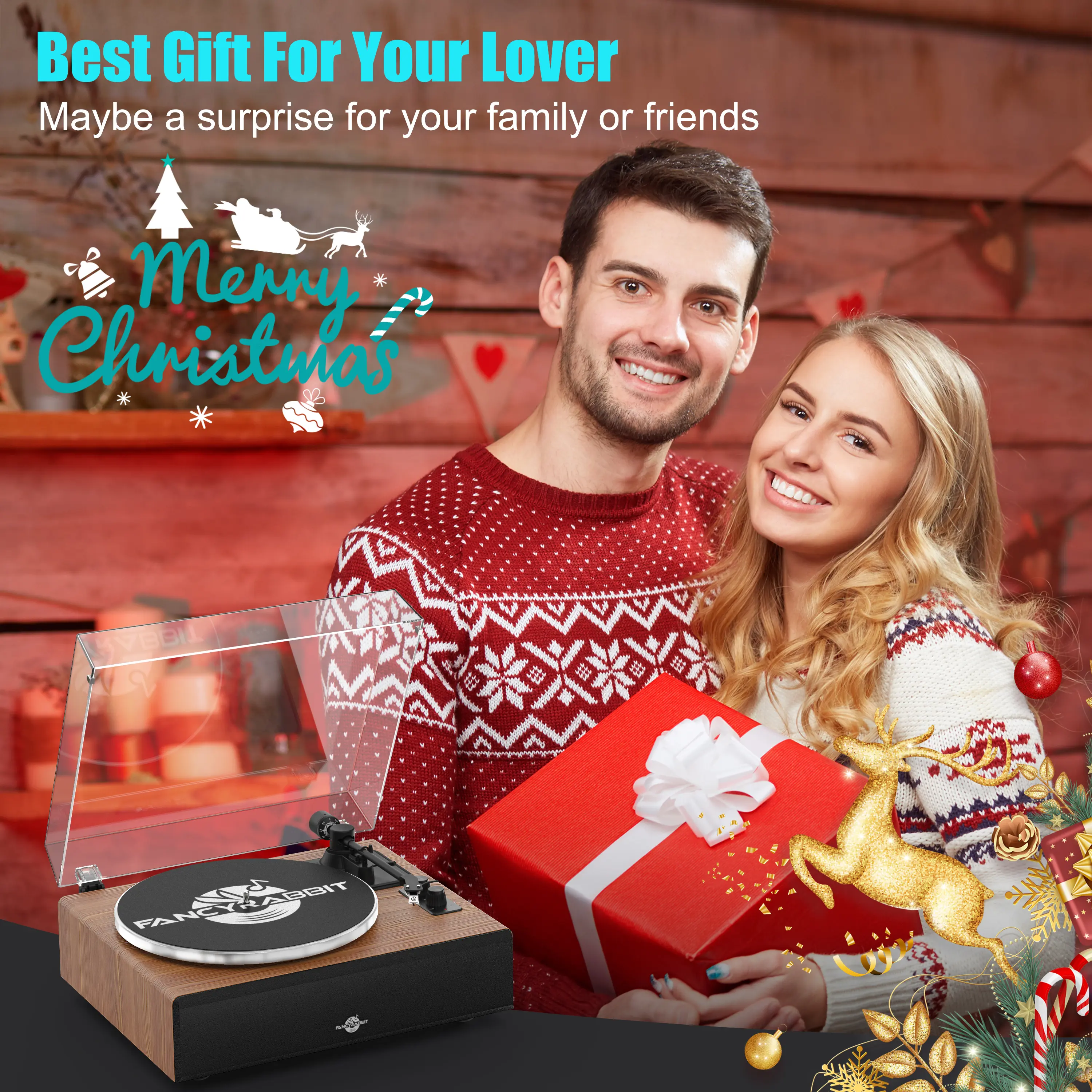 ·【Natural Wood Appearance 】 This vinyl player built from natural wood and metal materials with a unique sense of layering;The streamlined corner design is truly atmospheric and stylish, The record player with speakers will be a perfect gift for birthday and Christmas, especially for a music lover.