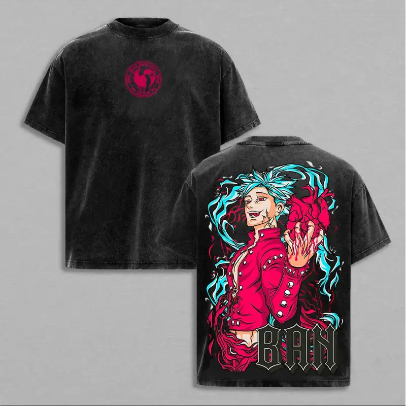 Ban Seven Deadly Sins Vintage Washed T-Shirt, Oversized Anime Streetwear Tee, Heavy Cotton Retro Manga Graphic Top, Unisex Casual Crew Neck Shirt, Edgy Hip Hop Fashion, Ideal Gift for Anime & Manga Fans