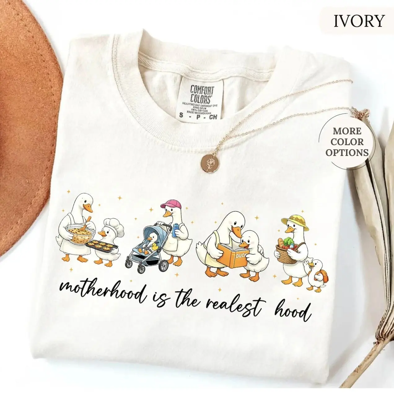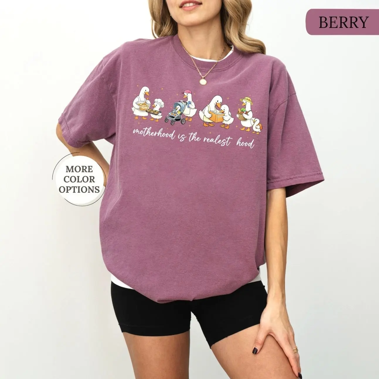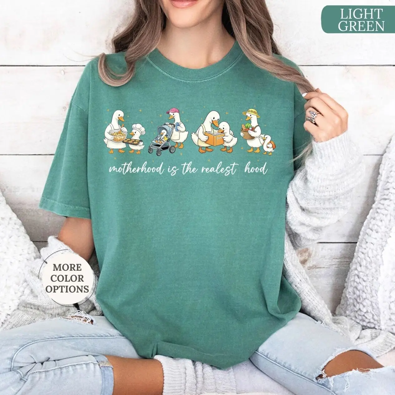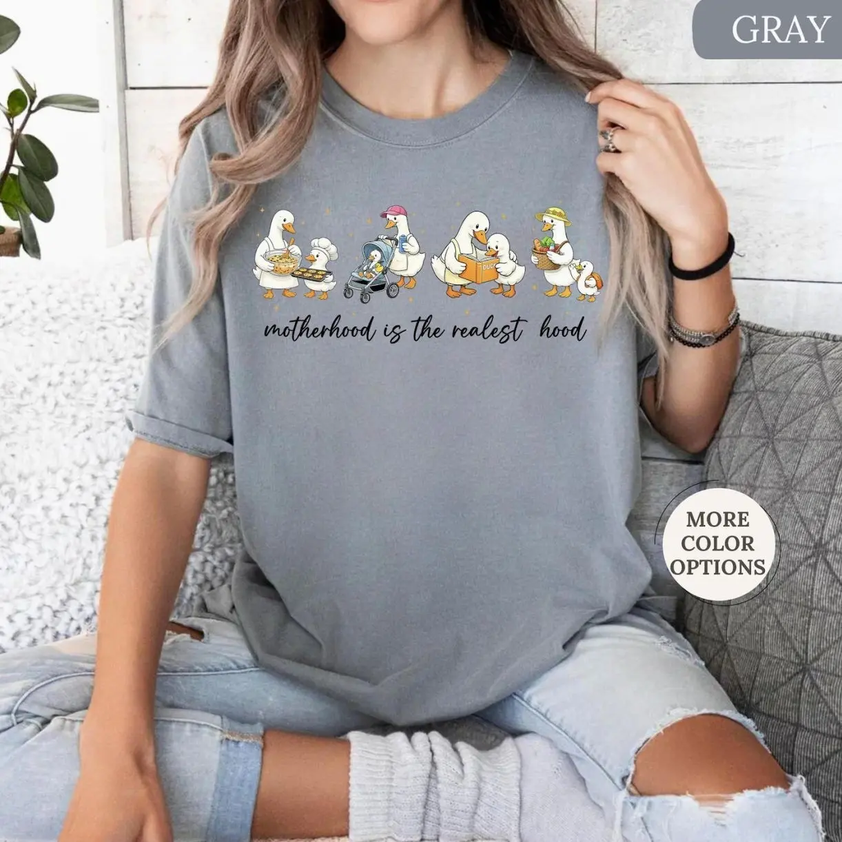 Motherhood Is The Realest Hood Shirt, Silly Goose Mom Shirt, Funny Mothers Day Shirt, Goose Lover Gift, Motherhood Tee 0
