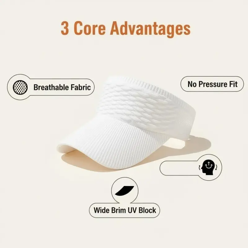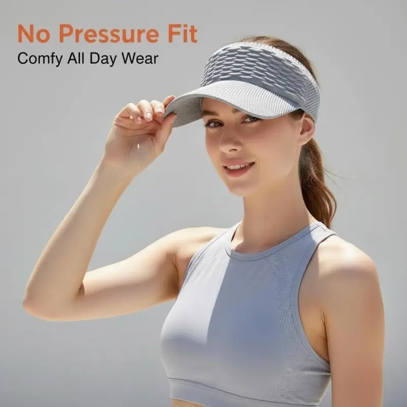 Stop ruining your hairstyle and cooking your head under traditional hats!Our Open Top Sun Visor is the ultimate balance.Get the facial shade you need without the trapped heat.