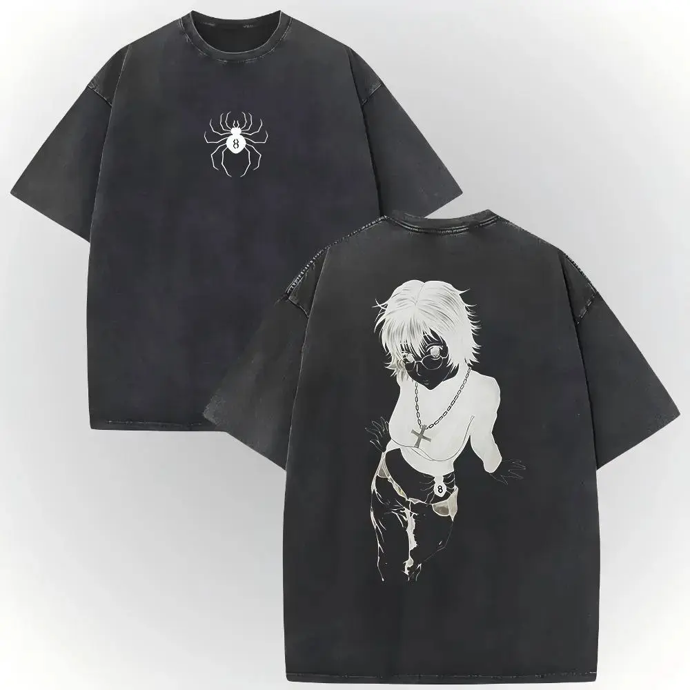 [Soft 100% Cotton] Shizuku Hunter X Hunter Anime Double Printed Vintage Washed Tee Unisex Oversize Heavyweight Cotton T-shirt for Anime Fans and Lovers