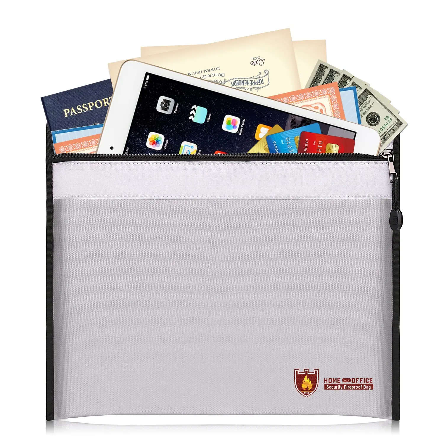 Upgrade Version 5000°f Fireproof Explosion-Proof File Bag, Insulated, Zipper, Waterproof, Ideal for Cash, Important Documents, Valuable Items