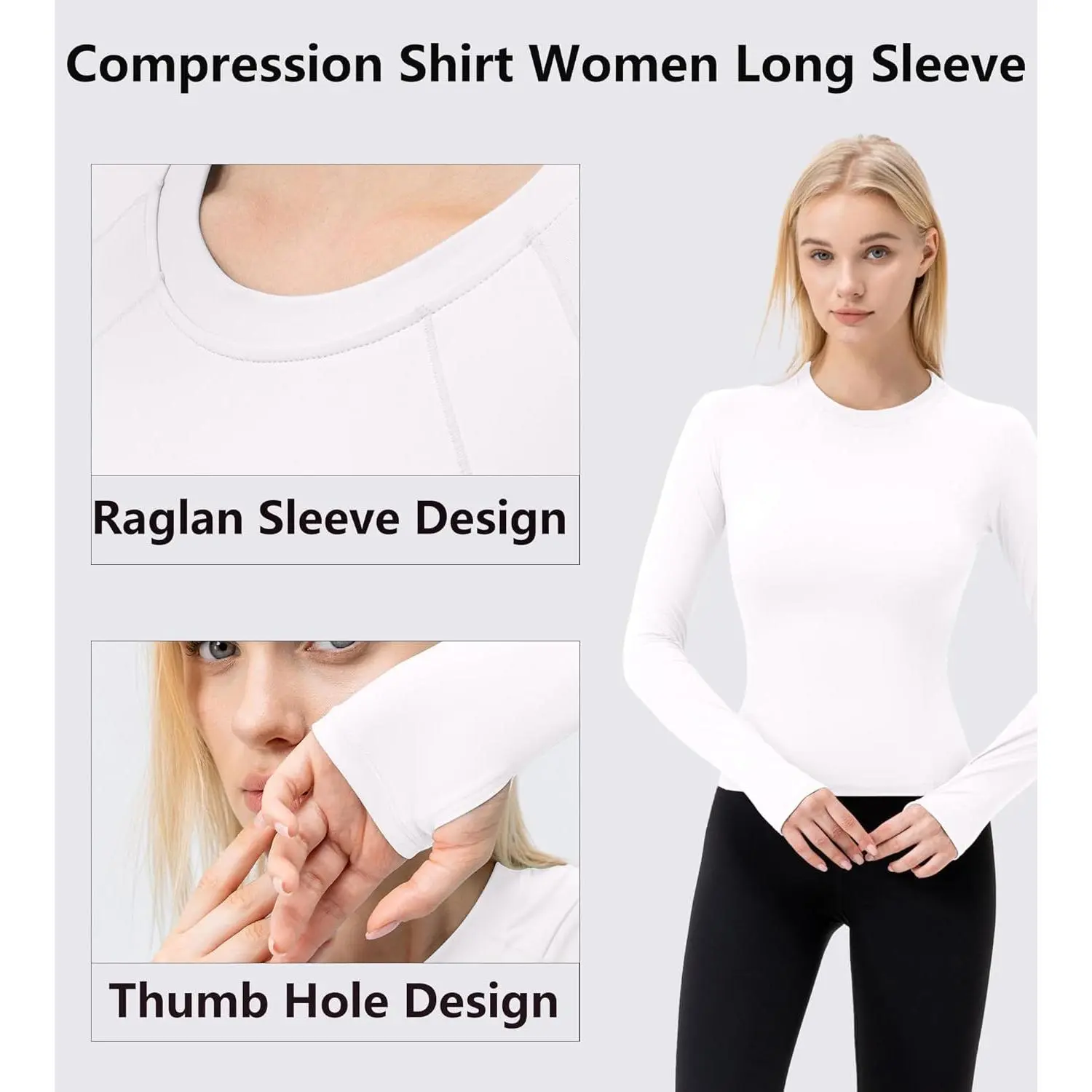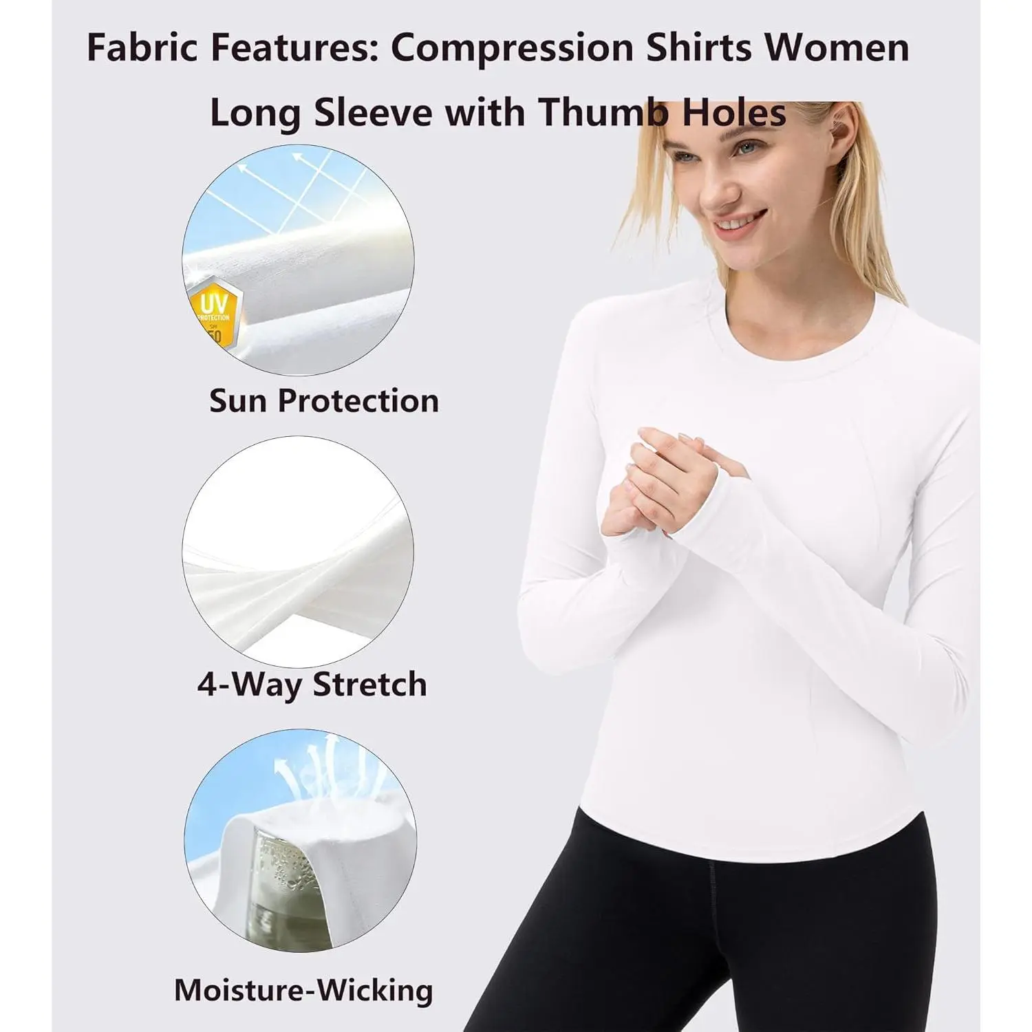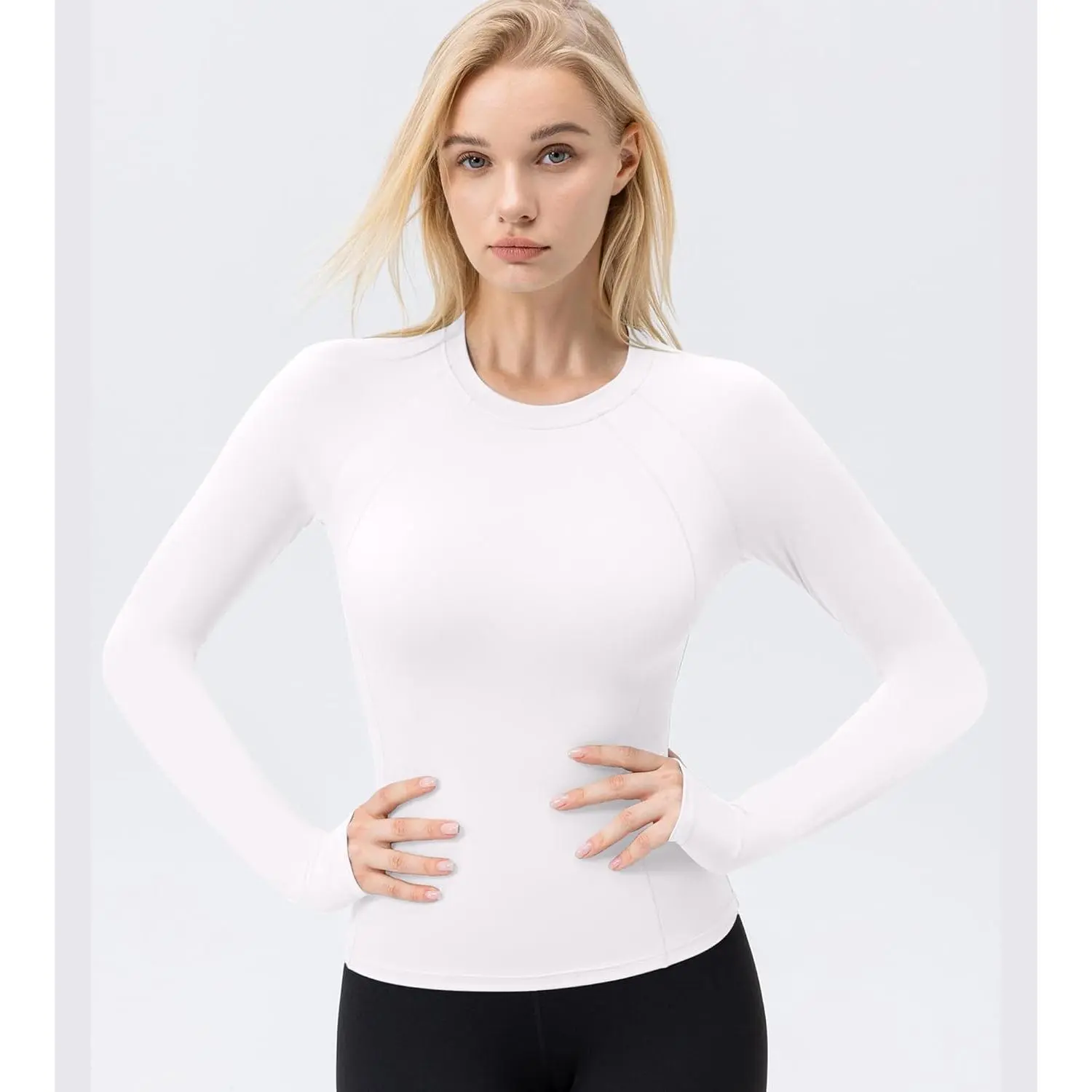 Women's Compression Shirt Long Sleeve with Thumb Holes Athletic Workout Shirt Seamless Quick Dry Underscrubs Tops