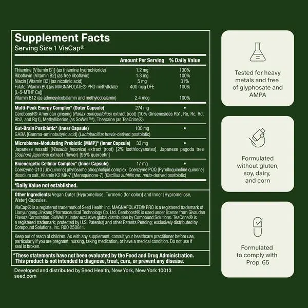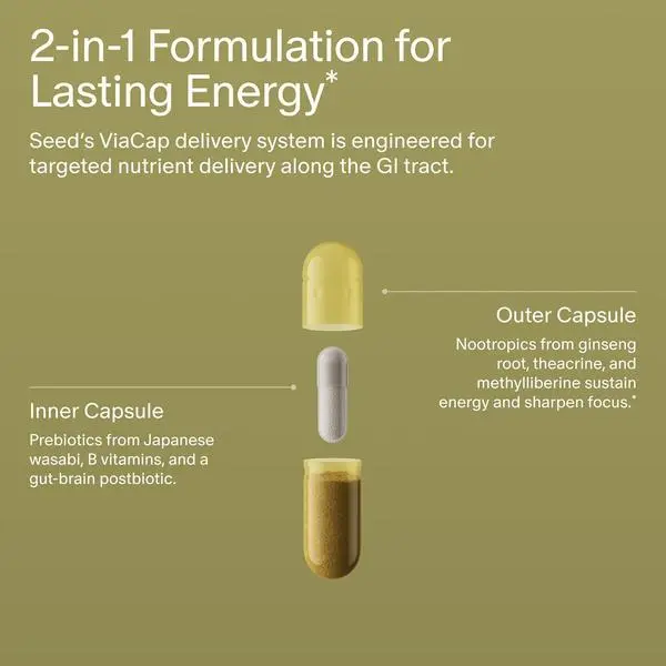 ·2-in-1 Formula For You + Your Microbiome: Proprietary capsule-in-capsule technology features an outer capsule that delivers active nootropics to you, and an inner capsule that delivers prebiotics and postbiotics to the microbiome—the foundation of the gut-brain axis.