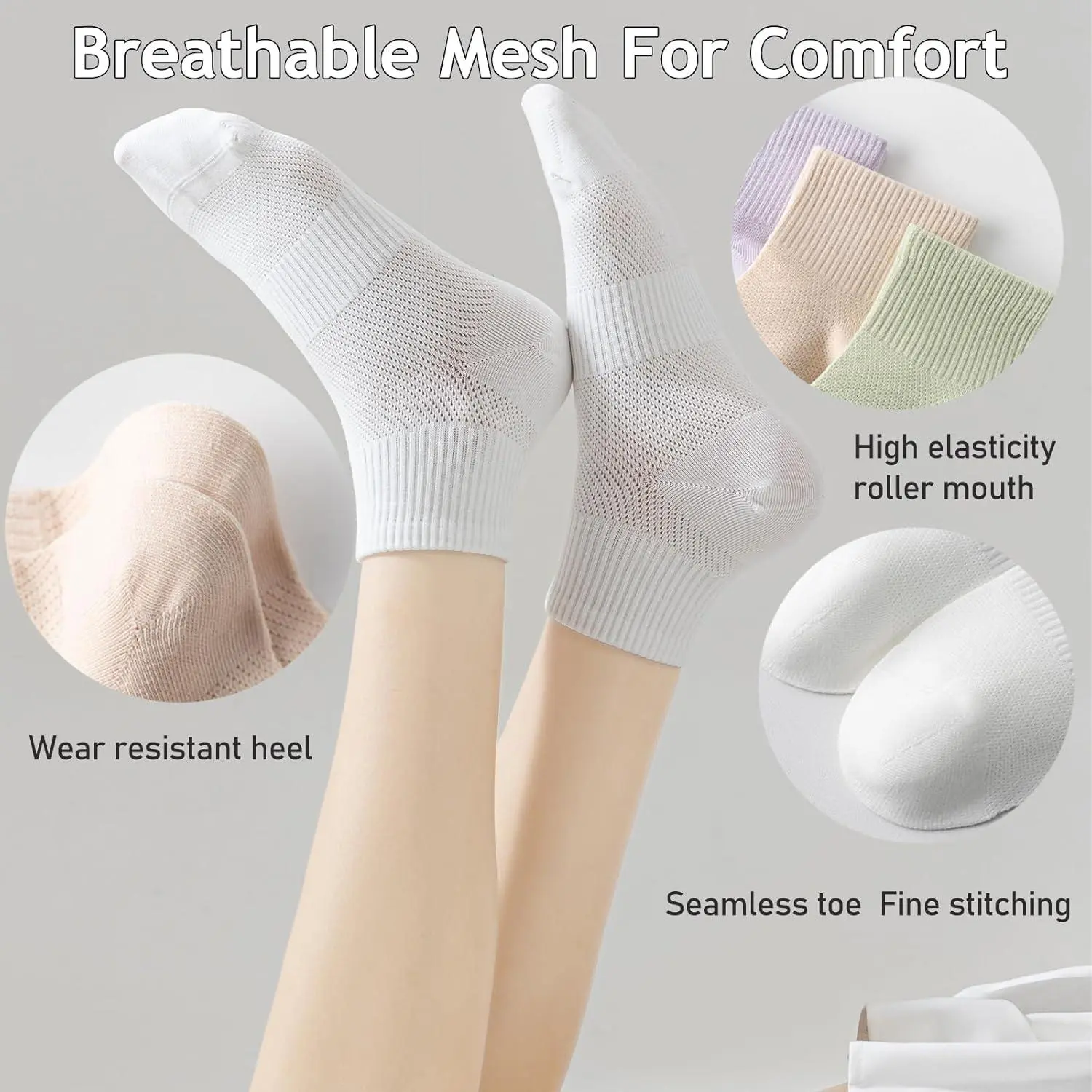 Women's Cotton Calf Socks- Breathable, Moisture-Wicking, for Casual & Athletic Wear|Soft Crew Socks with Arch Support
