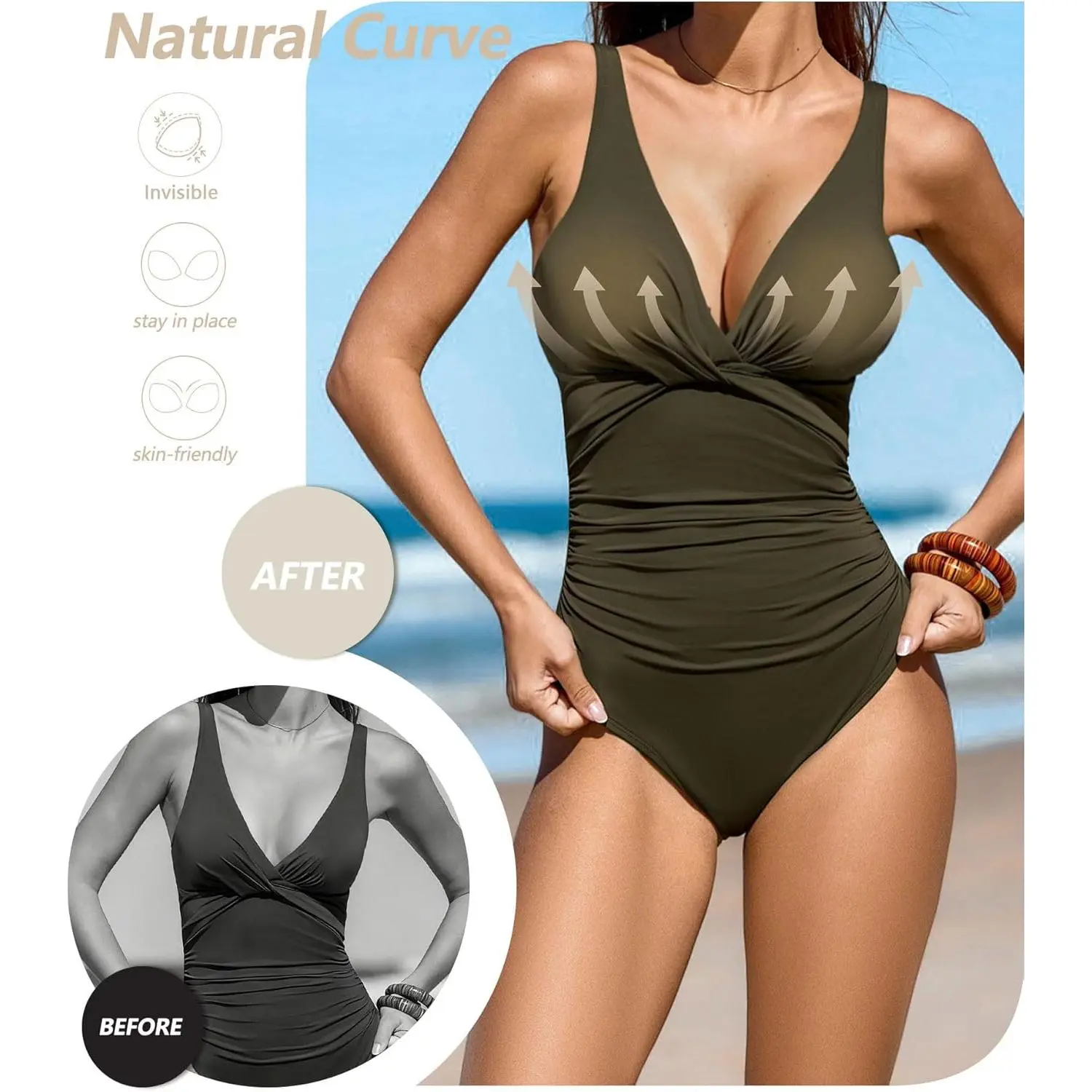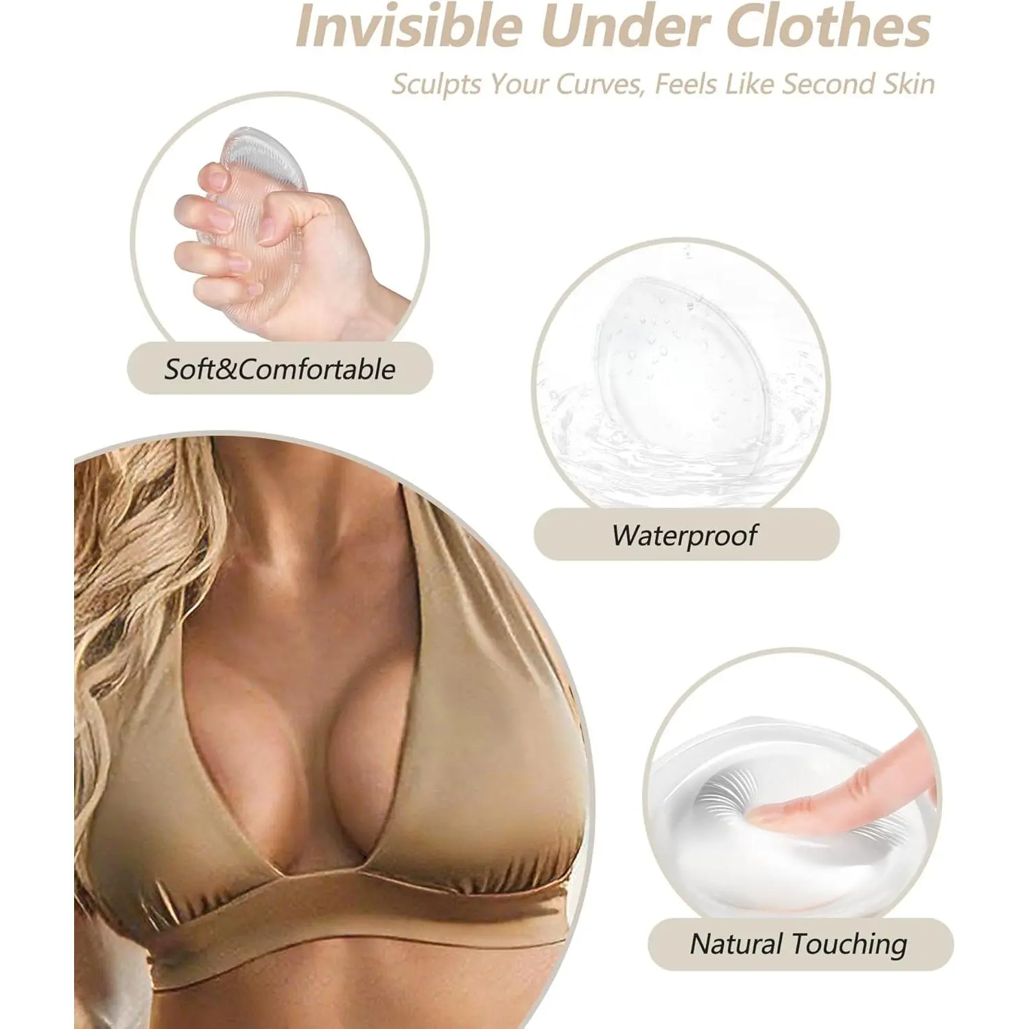 sellto Silicone Bra Inserts Push Up,Invisible Gel Breast Pads,Bust Bra Padding Enhancer for Bathing Suit