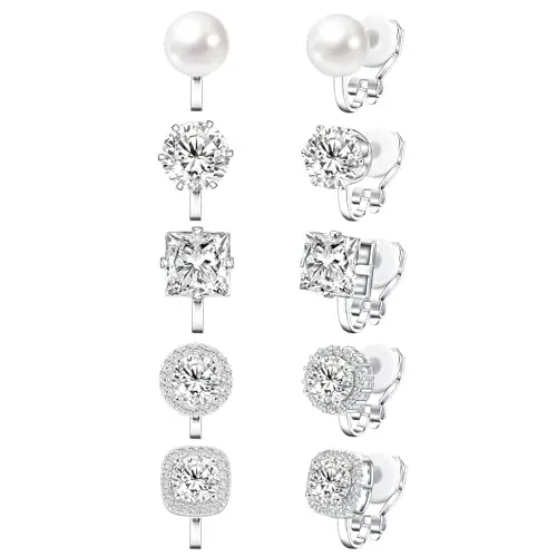 Cubic Zirconia Clip on Earrings - Women Hypoallergenic Comfortable Non Pierced Stud Earrings for Wedding and Dance Competitions, Clip-on Earrings Silver Gold