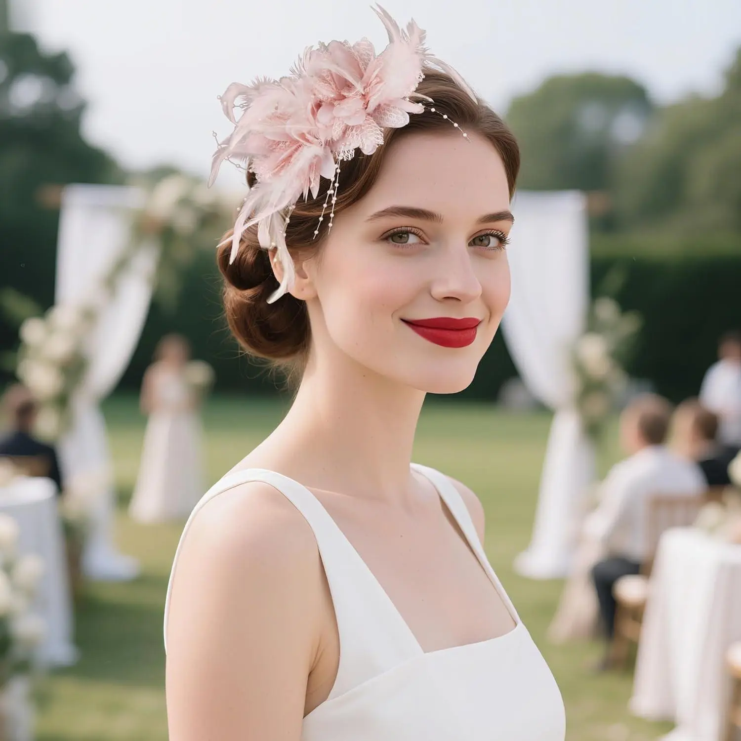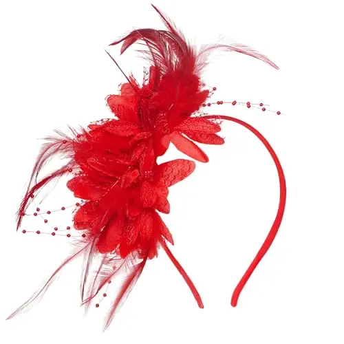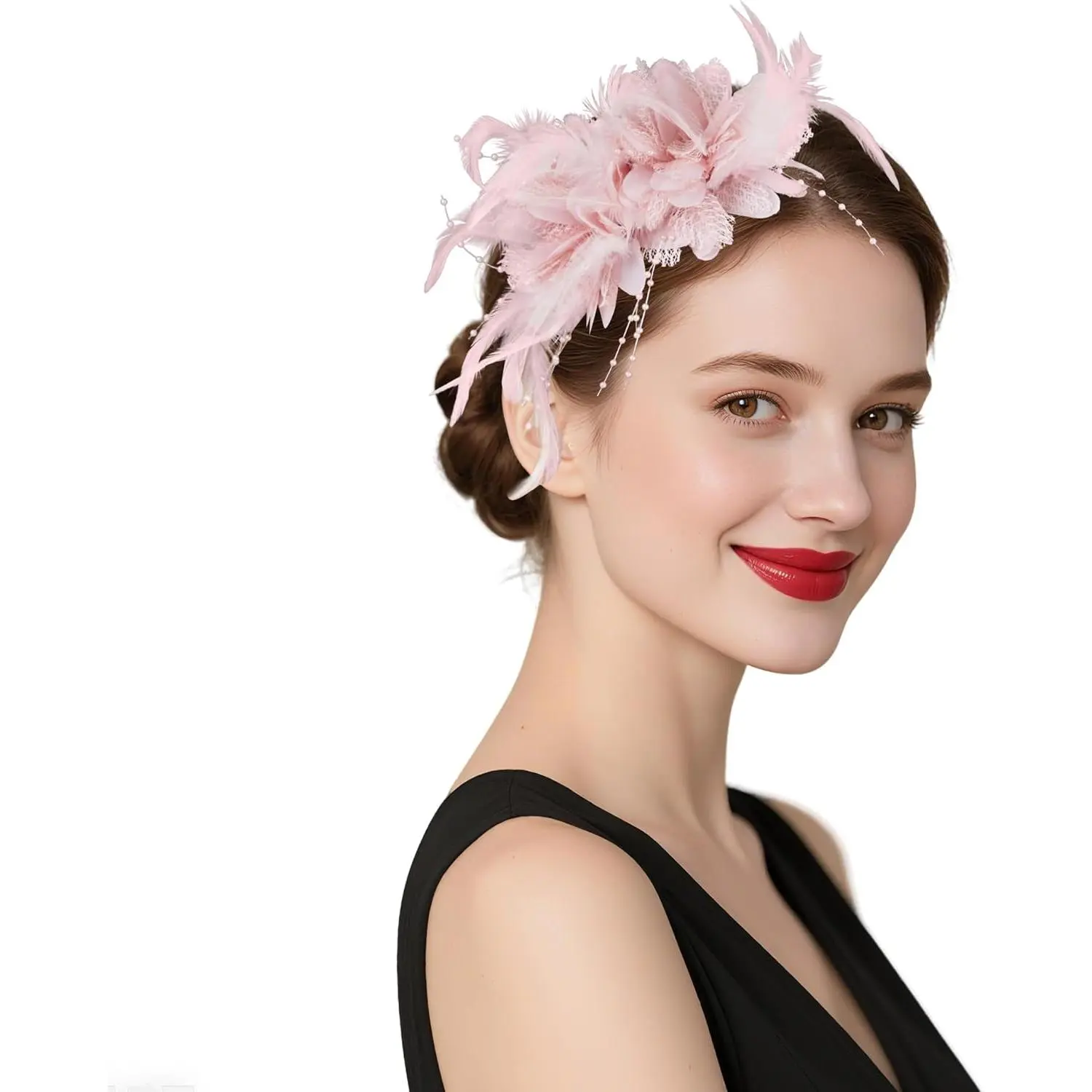Womens Fascinators Hats Tea Party Hats for Women, Feather Pearl Veil Headband for Wedding Cocktail Dresses Accessories