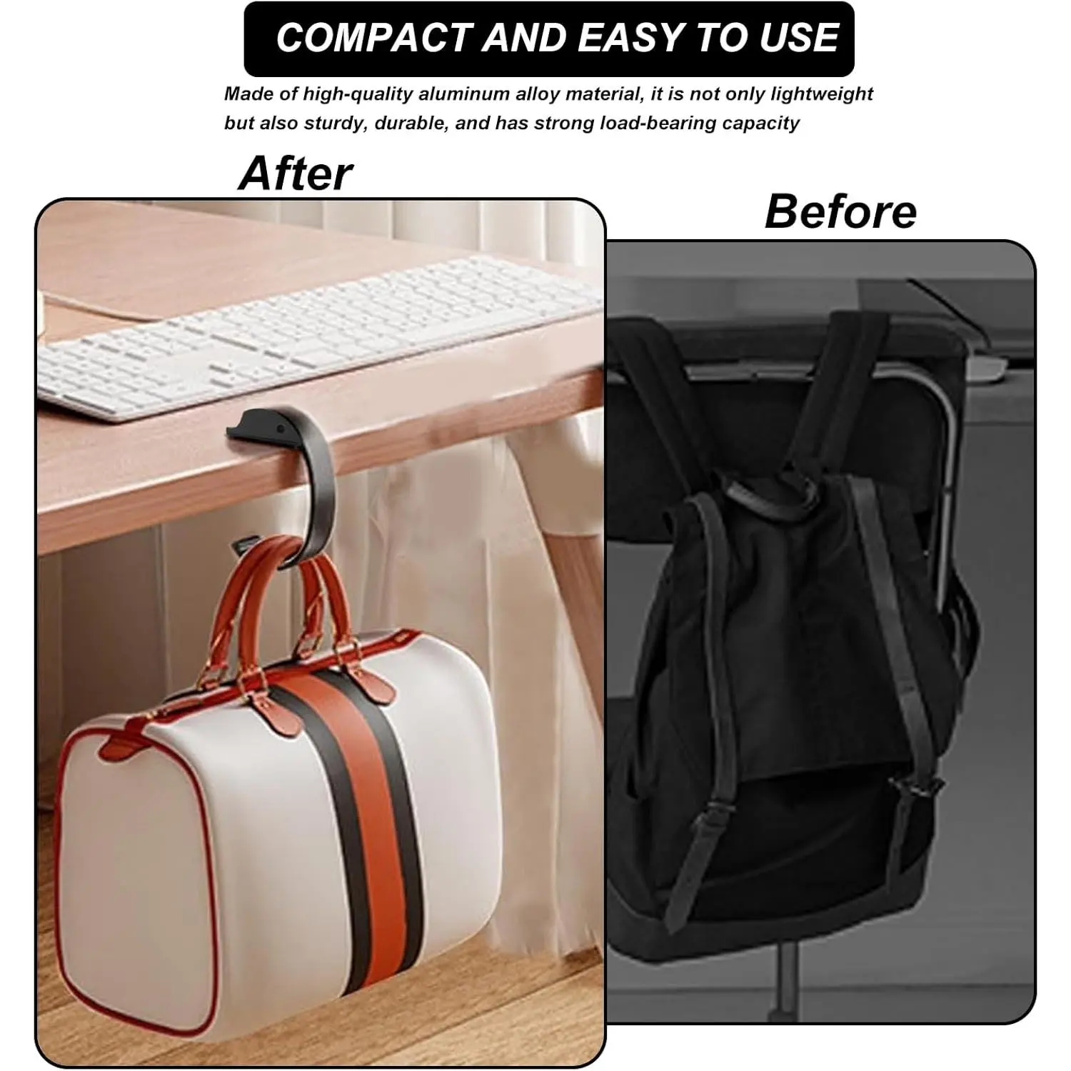 2PCS Purse Hook for Table Purse Hanger for Desk Portable Desk Bag Hook Non-slip Purse Holder for Table High-Strength Alloy Material for Durability Hangers for Table for Heavy Loads((Black and Gray)