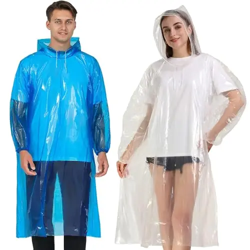 Disposable Rain Ponchos for Adults, Clear Poncho with Hood, Emergency raincoats for Hiking, Camping, Travel