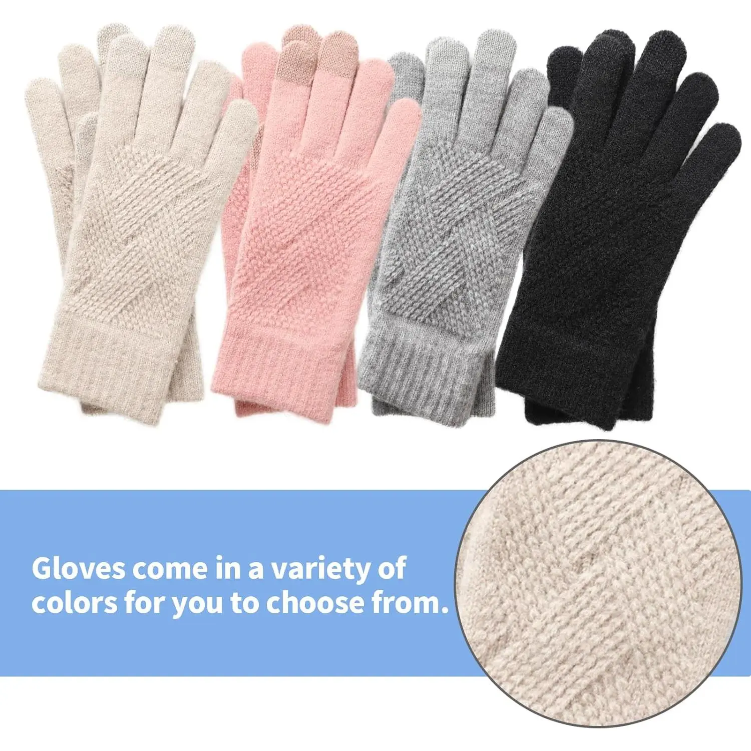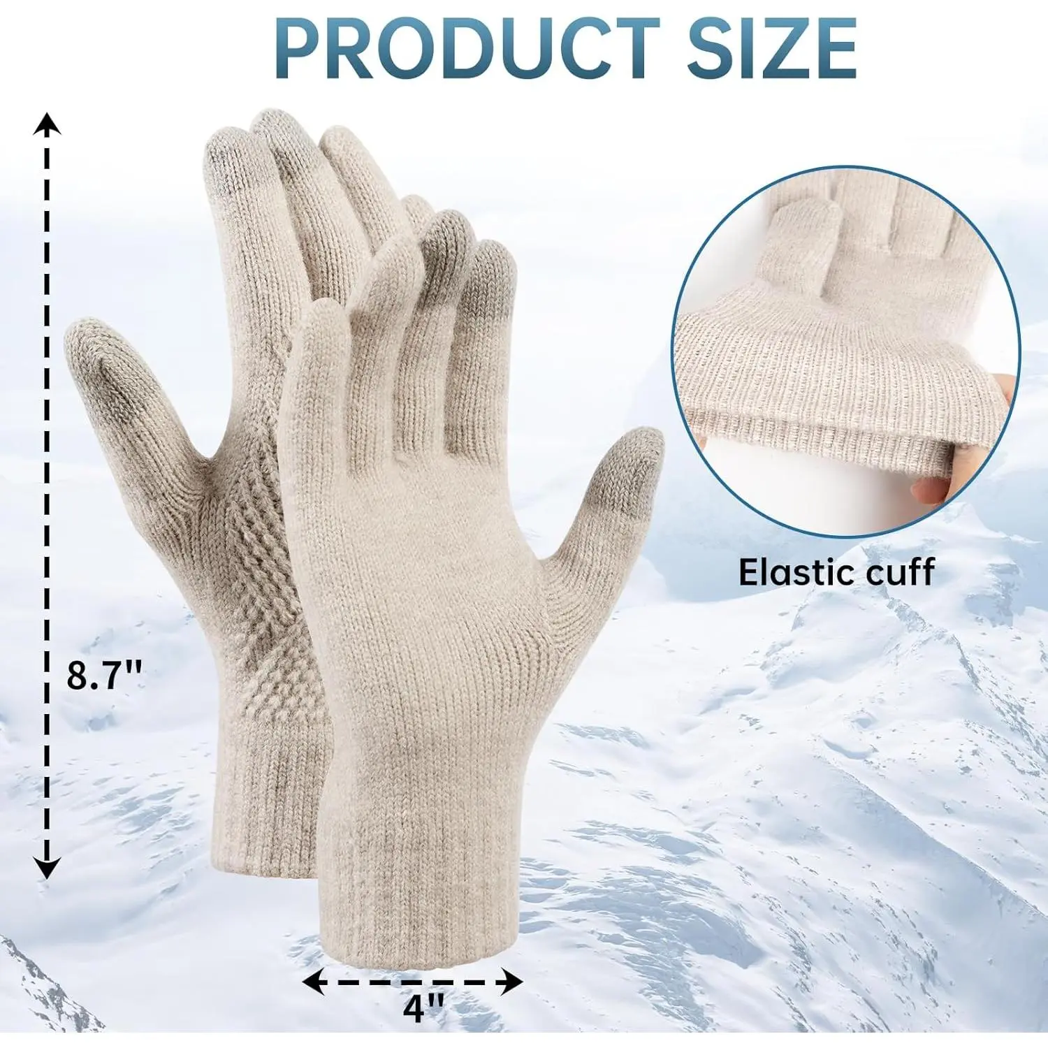 Winter Gloves - Gloves for Women Cold Weather, Touch Screen Winter Gloves Women Warm Alpaca Fleece Knit Gloves