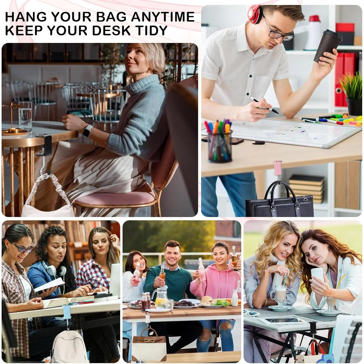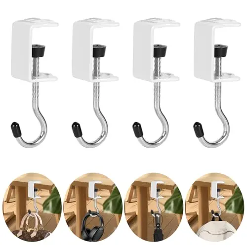 4 Pack Heavy-Duty Purse Hooks for Table & Desk - 50lb Capacity High-Strength Alloy Hanger, Multi-Use Organizer for Handbag, Backpack, Headphone, Space-Saving Office Table Accessories (Multicolor)