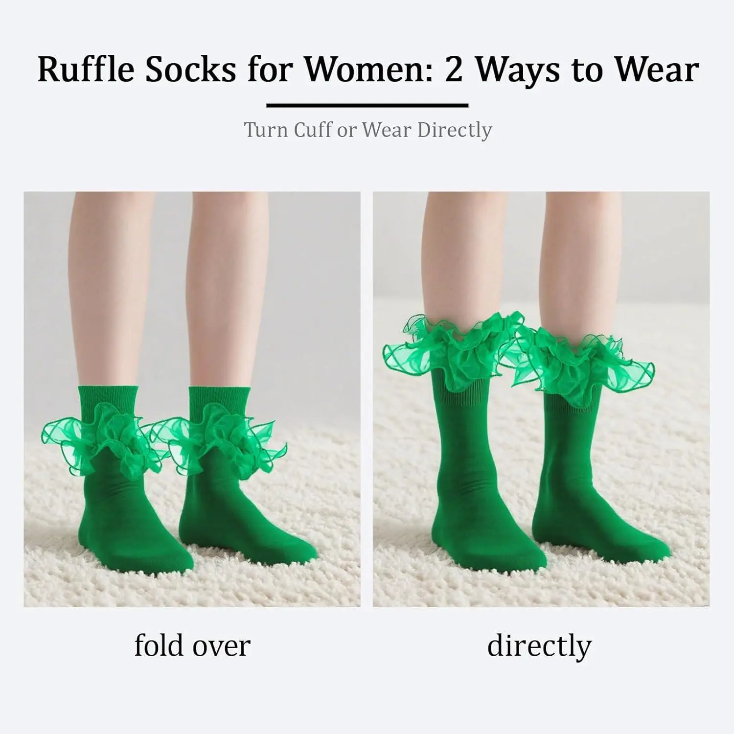Women Big Ruffle Ankle Socks Adult Double Lace Frilly Socks Fold Cuff Cotton Ruffled Dress Crew Bobby Bride Sock
