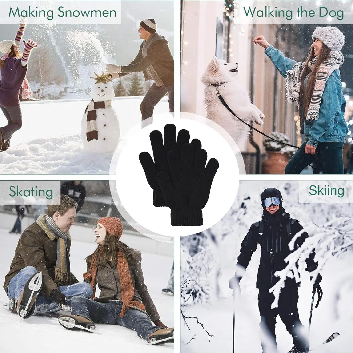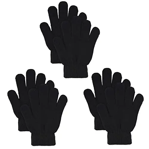 3 Pairs Winter Magic Gloves Warm Strecty Knit Gloves For Men Women in Common Size, Black