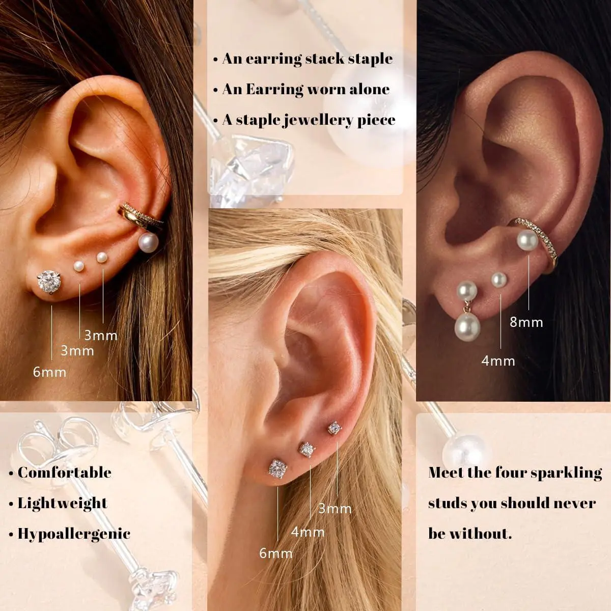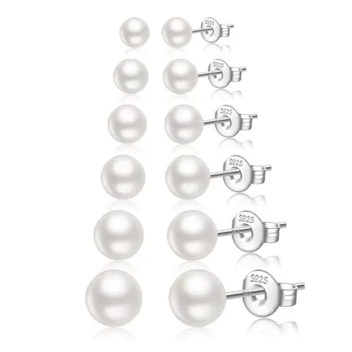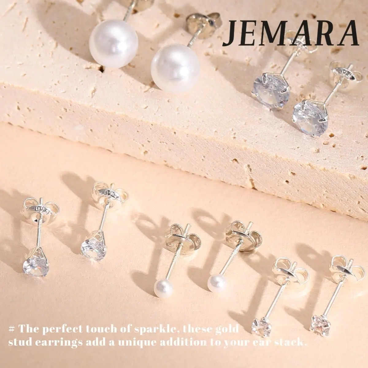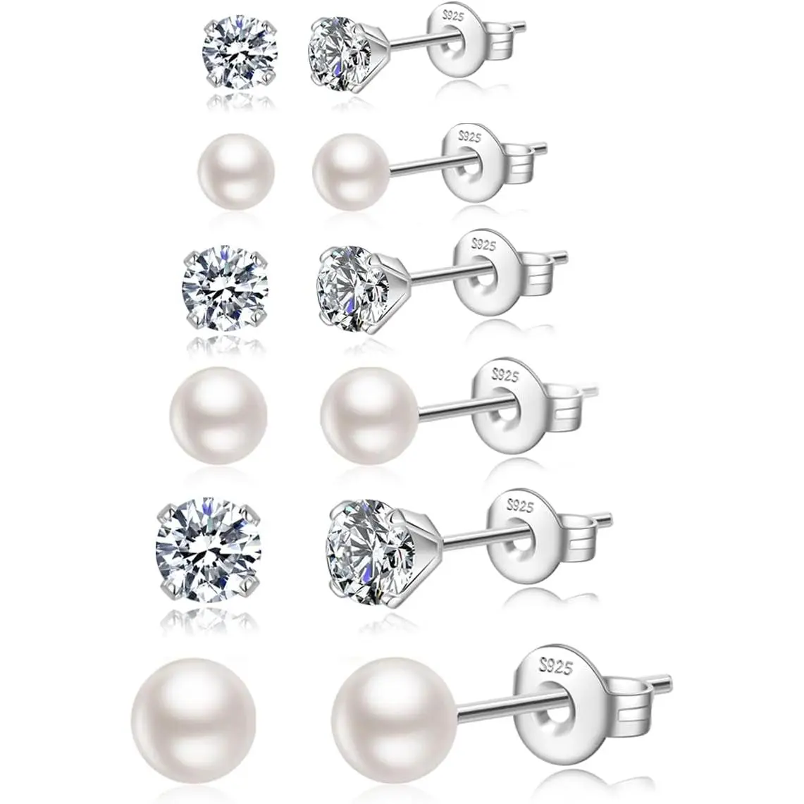 Silver Stud Earrings for Women Hypoallergenic 925 Sterling Silver Pearl Earrings Cubic Zirconia Ball Stud Earrings Set Dainty Earring Sets for Multiple Piercing