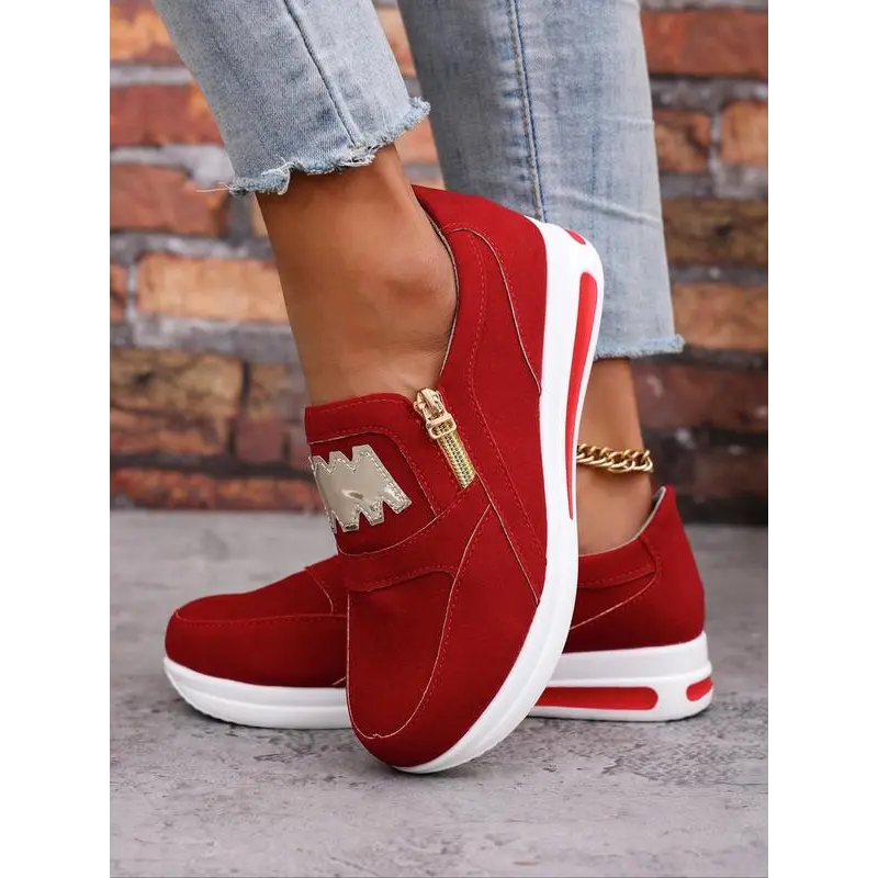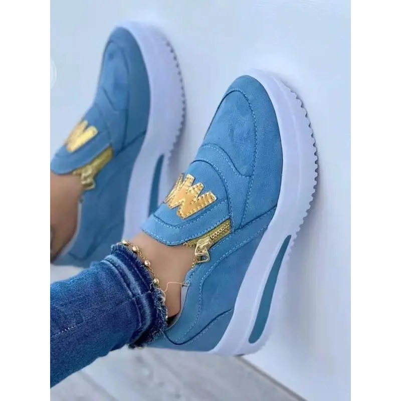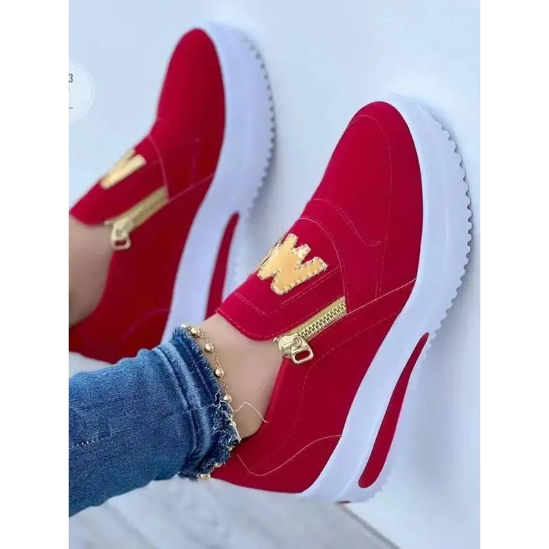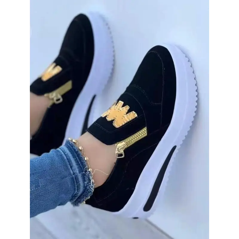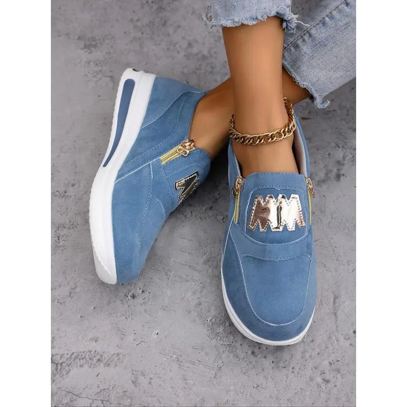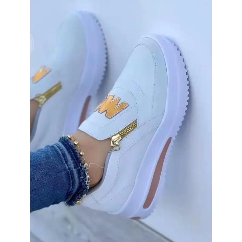 Women's Fashionable Letter Design Zipper Wedge Sneakers, Shoes for Women, Casual Comfortable Sports Shoes for Daily Wear, Female All-match Round Toe Shoes for Daily Wear