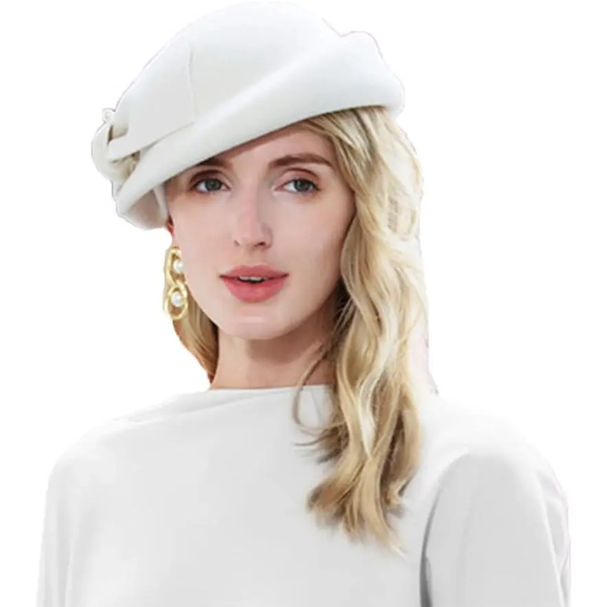 Women Wool Felt Ribbon French Fashion Vintage Millinery Beret Hats Top Cap Ladies Party Wedding Fedoras Chapeau