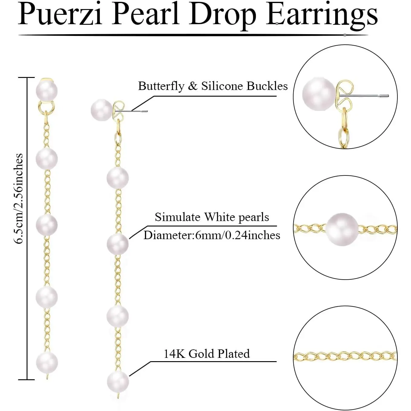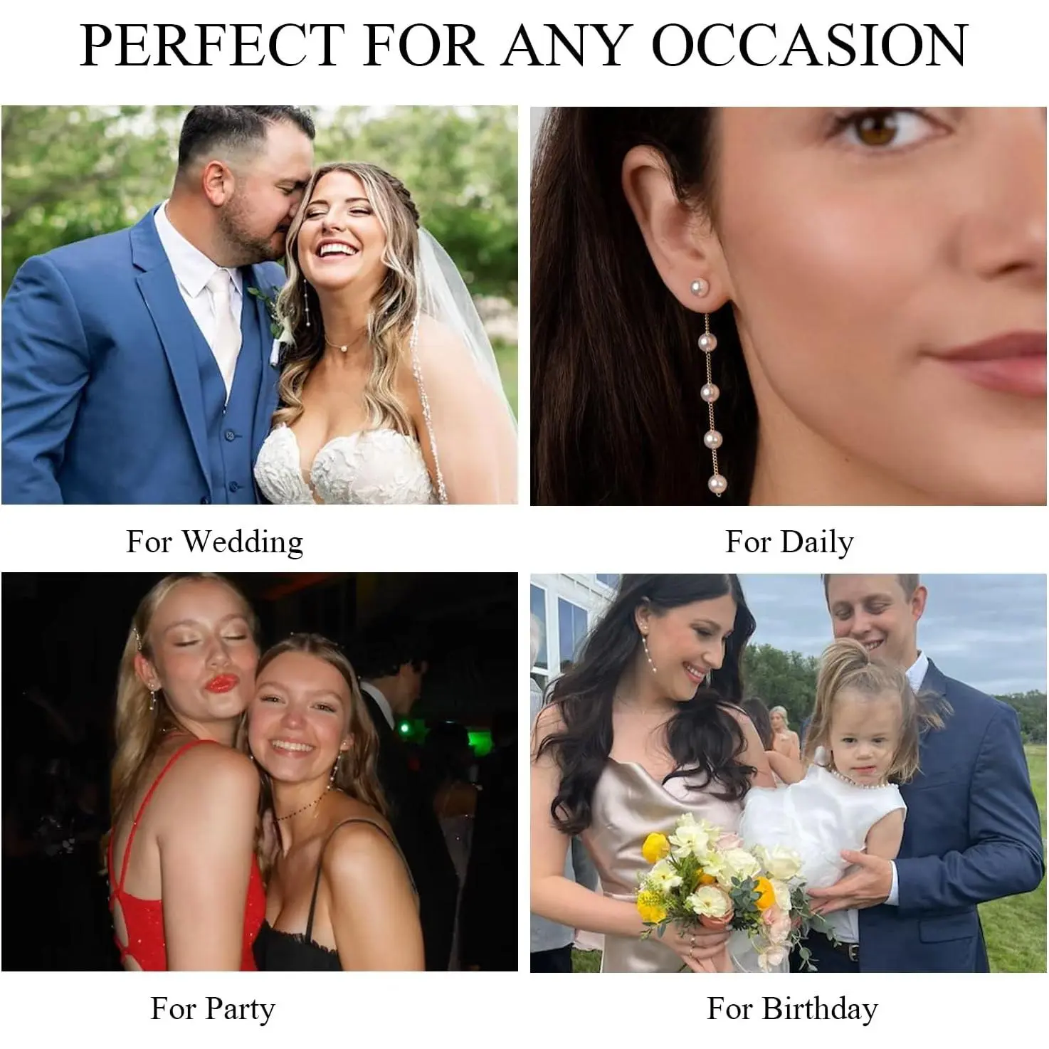 Pearl Earrings,4mm 5mm 6mm Gold/Silver Dangle Earrings for Women White Long Drop Pearl Dangling Earrings Bridal Wedding Dainty Prom Earrings Birthday Gifts Jewelry