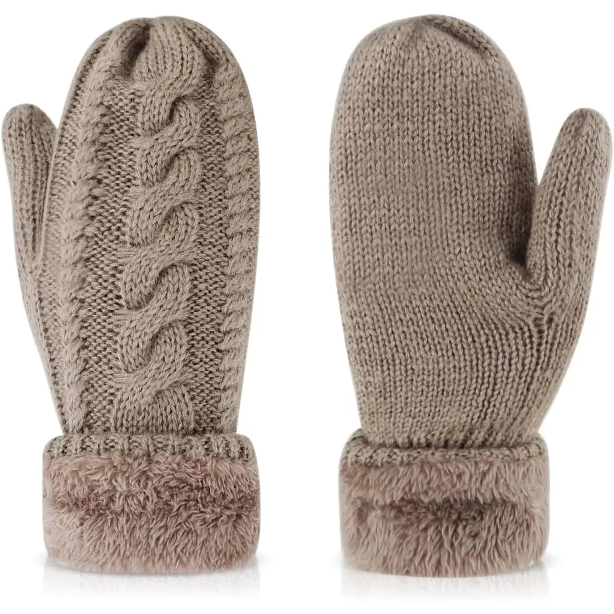 Winter Warm Mittens for Women, Unisex Soft Thermal Fleece Lining Mittens, Cozy Thick Knitted Gloves for Cold Weather