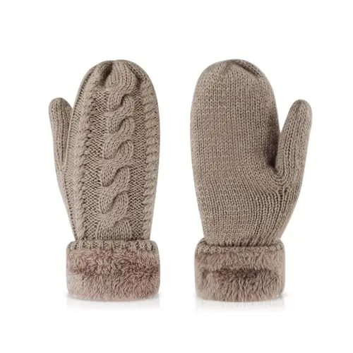 Winter Warm Mittens for Women - Knit Gloves Soft Wool Thick Fleece Lining Mittens