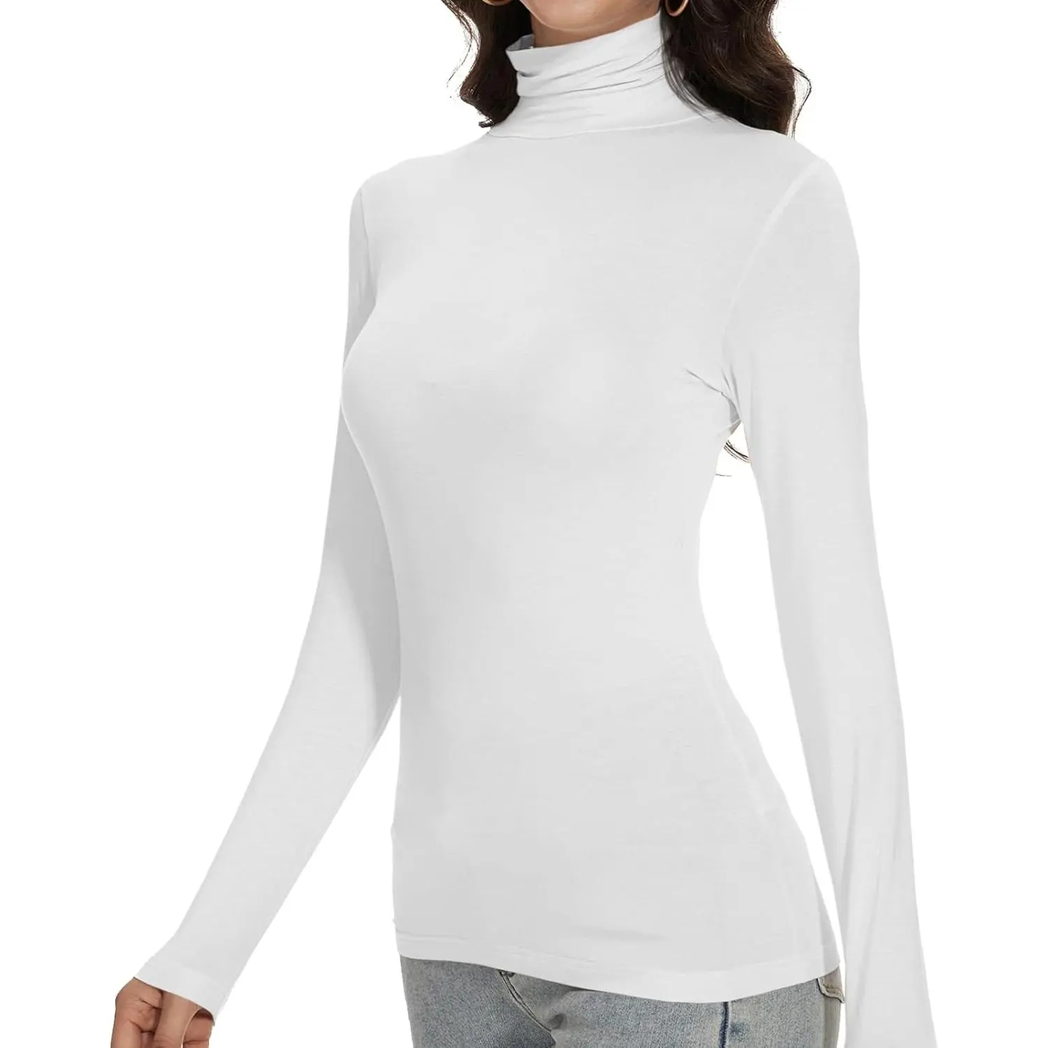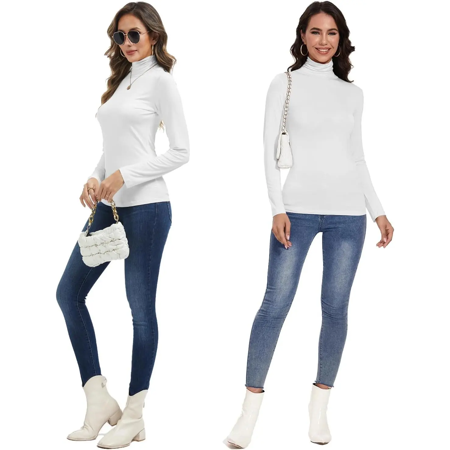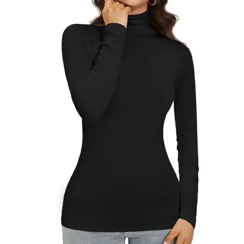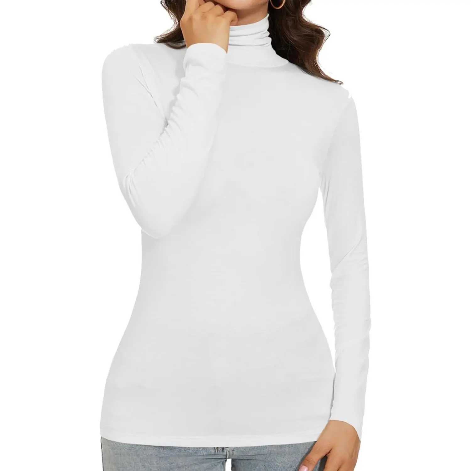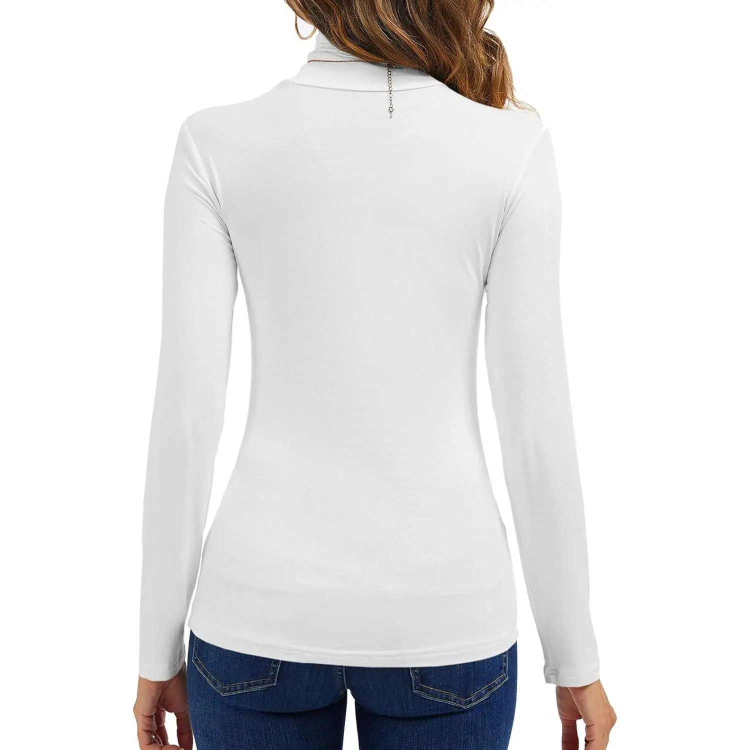 Womens Turtleneck Shirts Long Sleeve Slim Fitted Casual Basic Lightweight Undershirt Tops