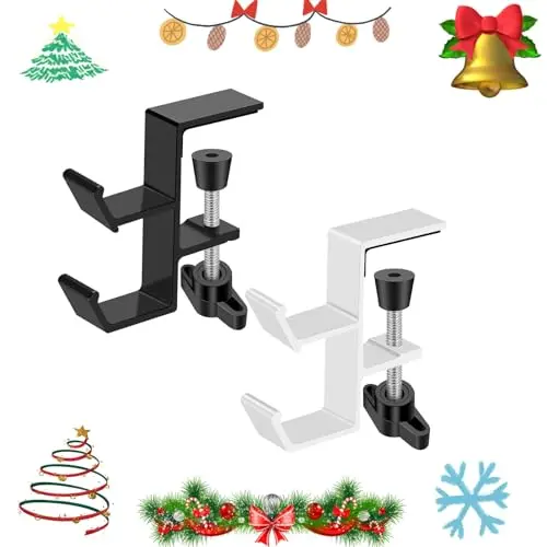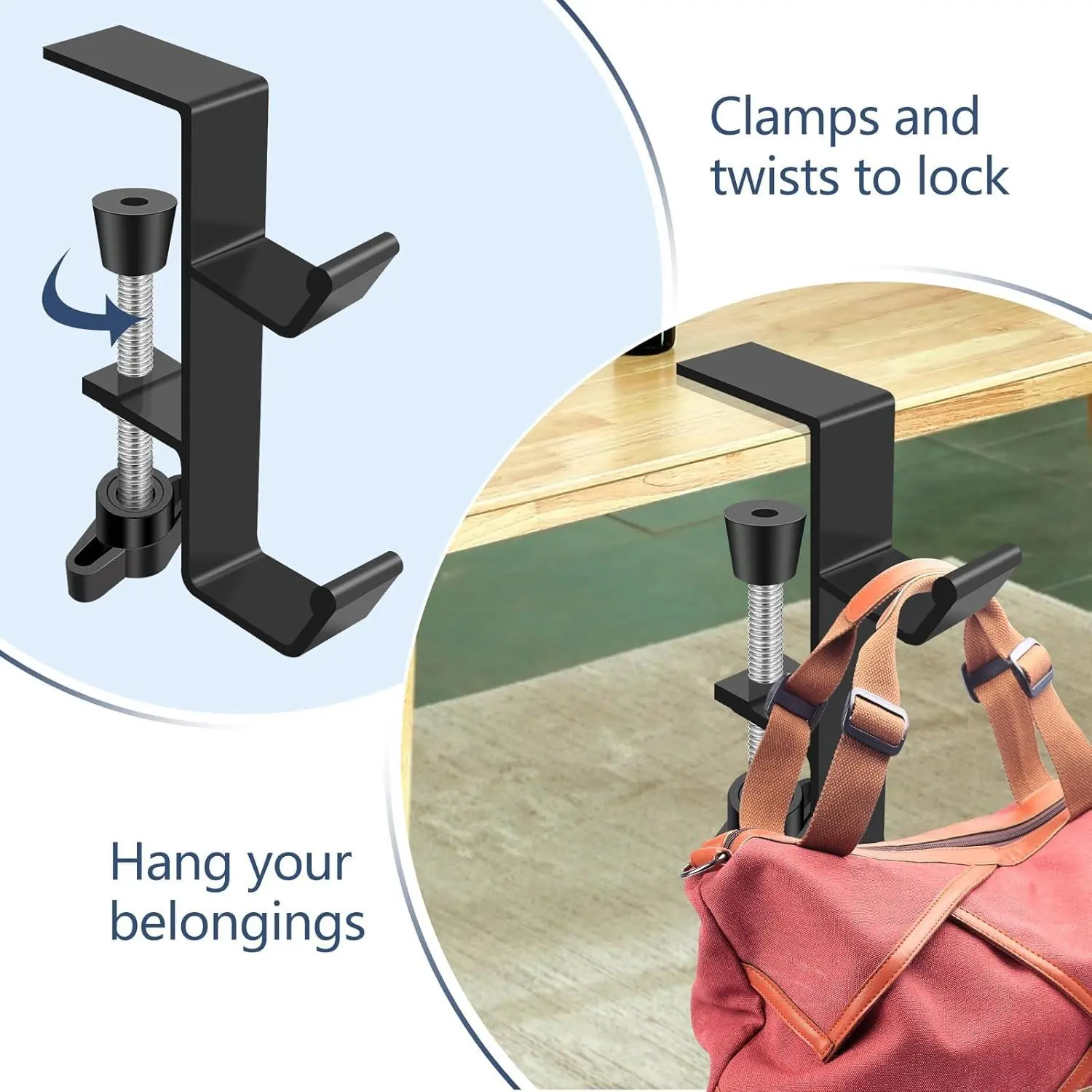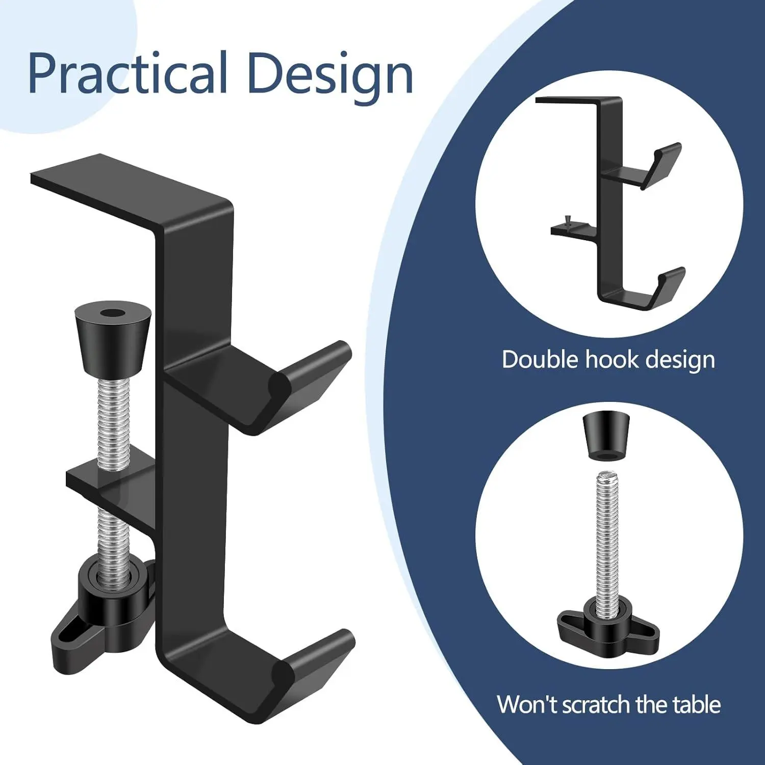 Desktop Hook Under-Table Handbag Hanger Wallet Hook Simple for Holiday Decoration Desktop Backpack Rack Headphone Hanger 2-Piece Pack Double Hook (Black)