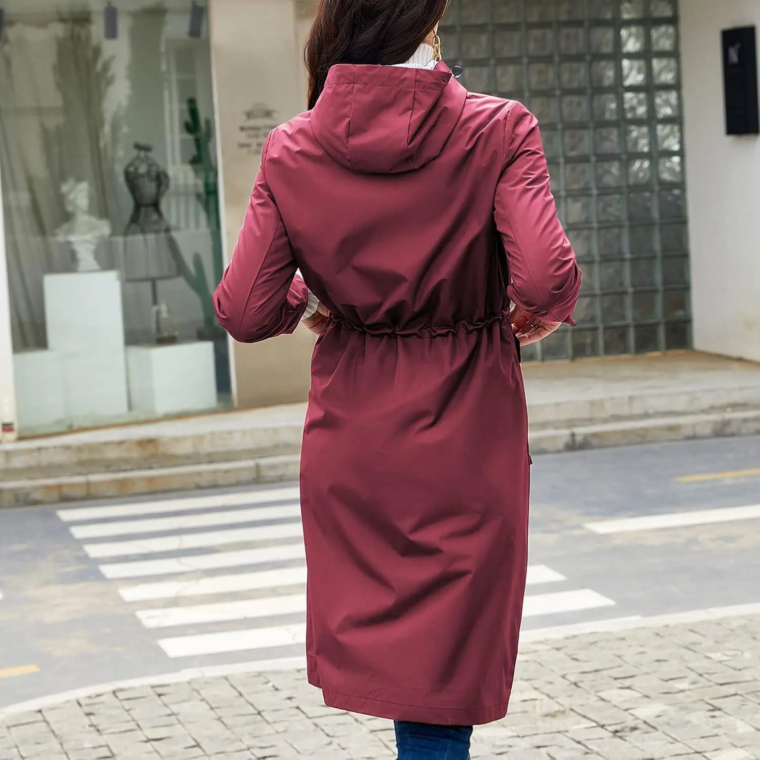 Women's Hooded Rain Jacket Long Waterproof Raincoat Casual Full Zip Anorak Midi Windbreaker Pockets