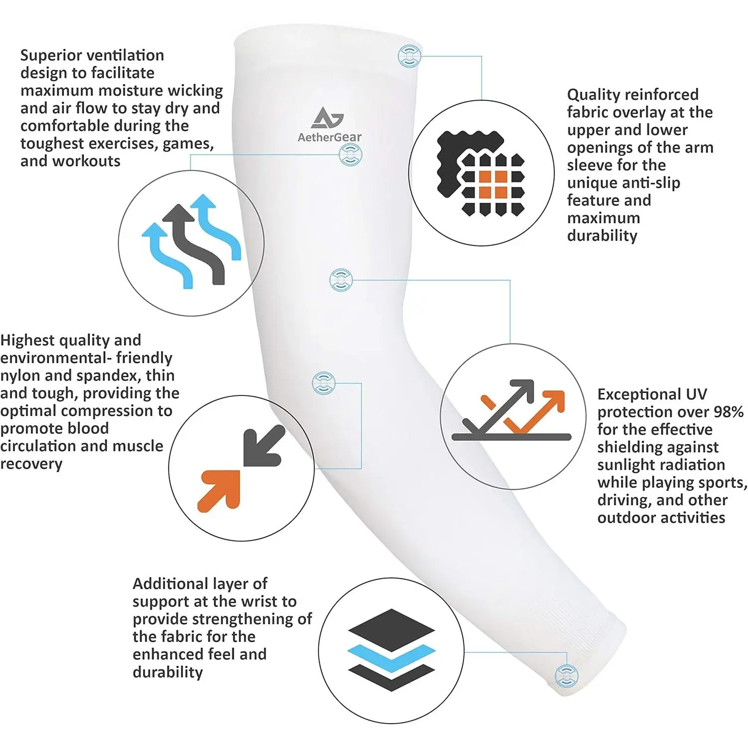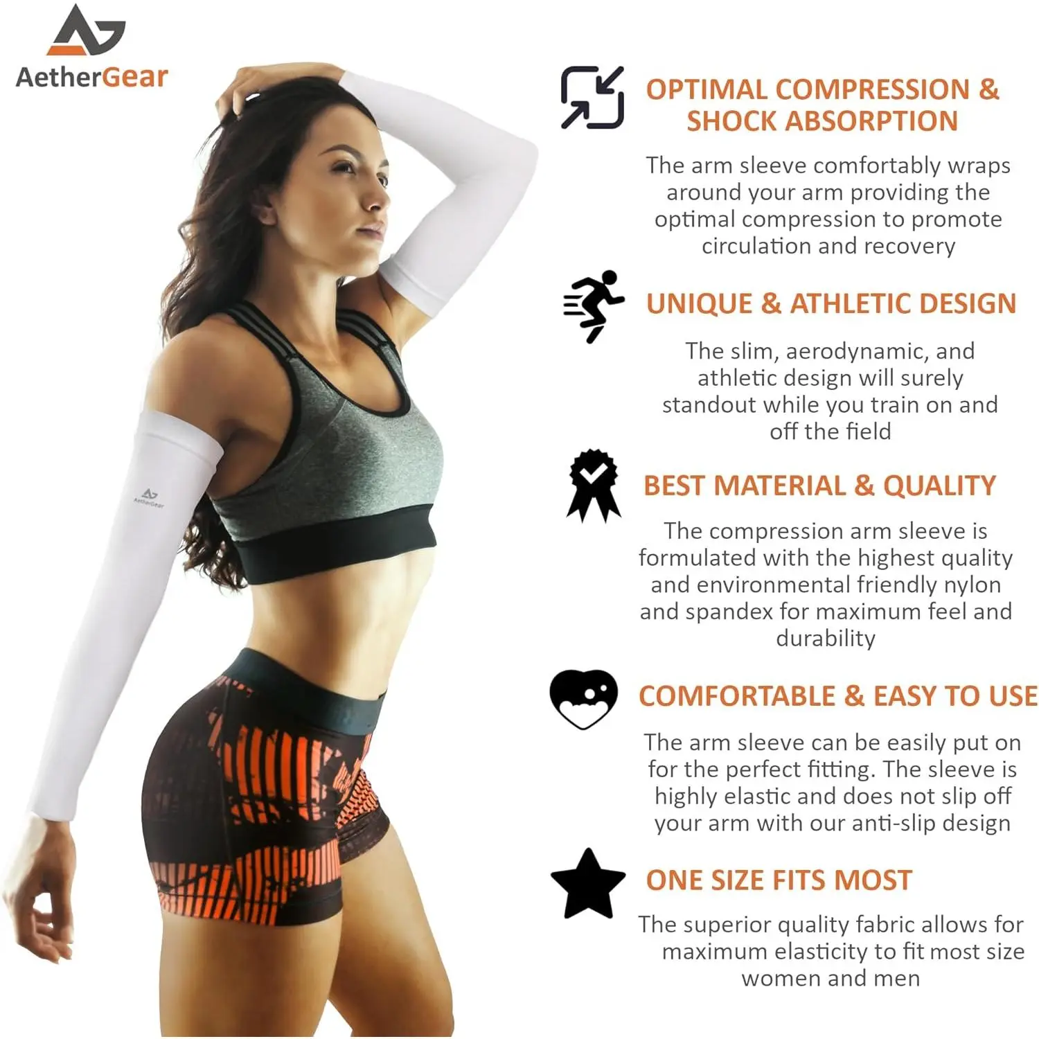 Compression Arm Sleeve (2 pack) - Men and Women for Basketball, Volleyball, Tennis, Golf, Baseball, UV Protection