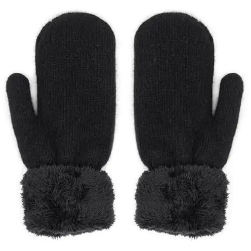 Womens-Winter-Mittens Warm-Knit-Gloves - Soft-Stretchy Faux-Rabbit-Fur-Mittens for Cold-Weather