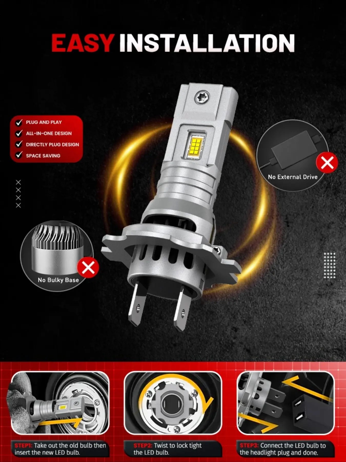 2Pcs H1 H7 H4 H11 9005 HB3 9006 HB4 LED Headlights 50000LM 800% Brighter Original Bulb Wireless Headlamp 6000k CANBUS LED Auto Light Plug And Play 12V