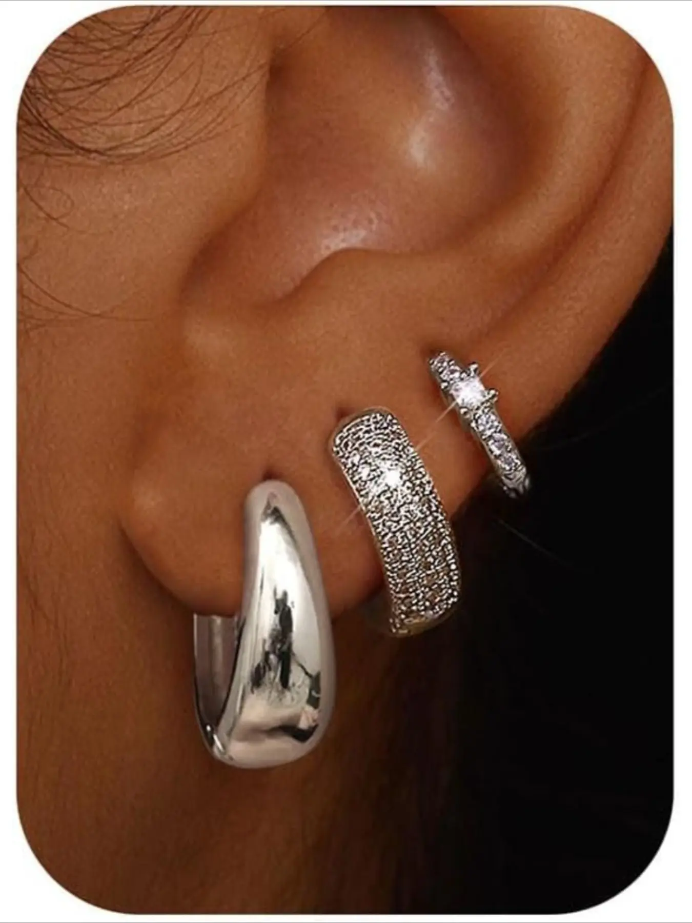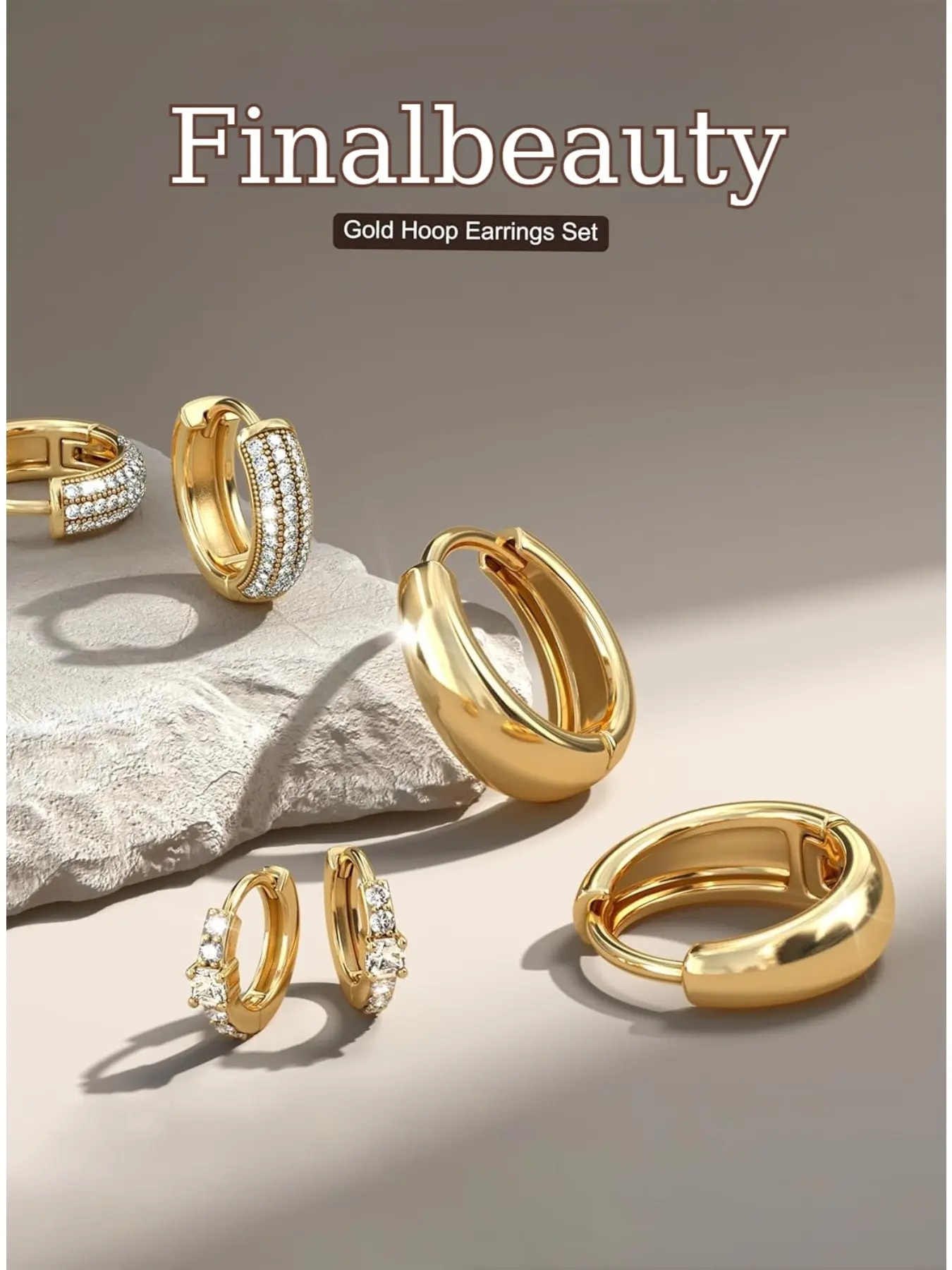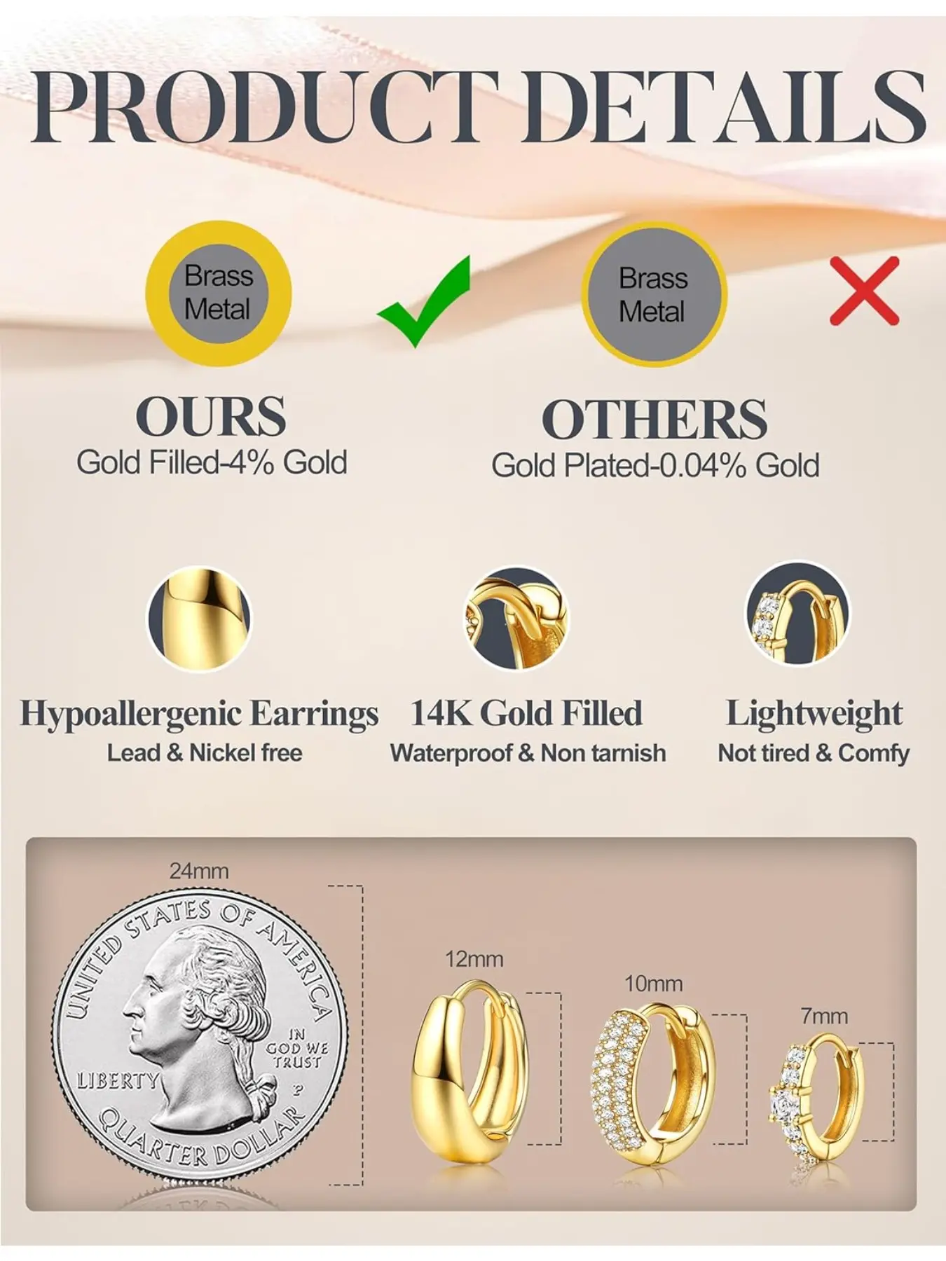 3 Pairs Small 14K Gold Plated Chunky Hoop Earrings for Women Hypoallergenic Silver Earrings Set for Sensitive Ears Non Tarnish Huggie Hoops Earring Stacks for Multiple Piercing Jewelry Gifts