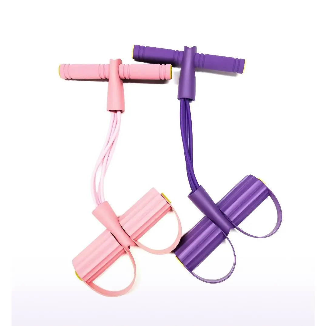 This portable foot pedal fitness equipment is perfect for various workouts. It supports abdominal training, sit-ups, yoga, and rehabilitation. The trainer comes in two colors: purple and pink. Each set includes a pedal and a resistance band. Ideal for home or travel use, it offers versatile exercise options.