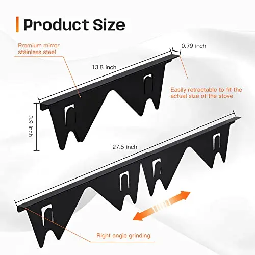 ·Unique Design: Each gap filler consists of two stainless steel pieces. Telescoping design for easy adjustment. Fits gaps up to 0.7". Perfect for various stovetop and oven gaps.