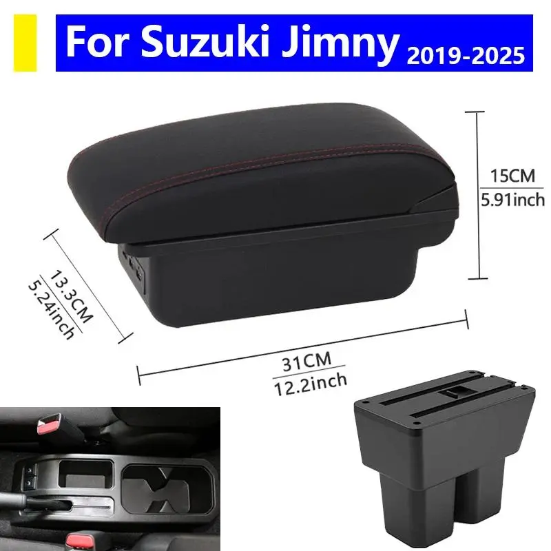 Car Interior Decoration Accessories For Suzuki Jimny JB74 JB64 JC74 GEN4 2018-2024 Interior Design Center Console Storage Box Black PU Leather Armrest