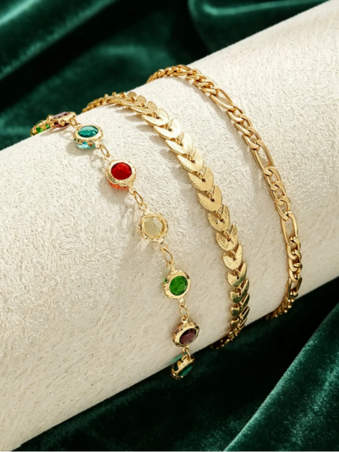 5. Fashion Multi-Layer Anklets Set, Handmade Adjustable Crystal Beaded Ankle Bracelet for Beach Party, Daily Wear Jewelry Gift