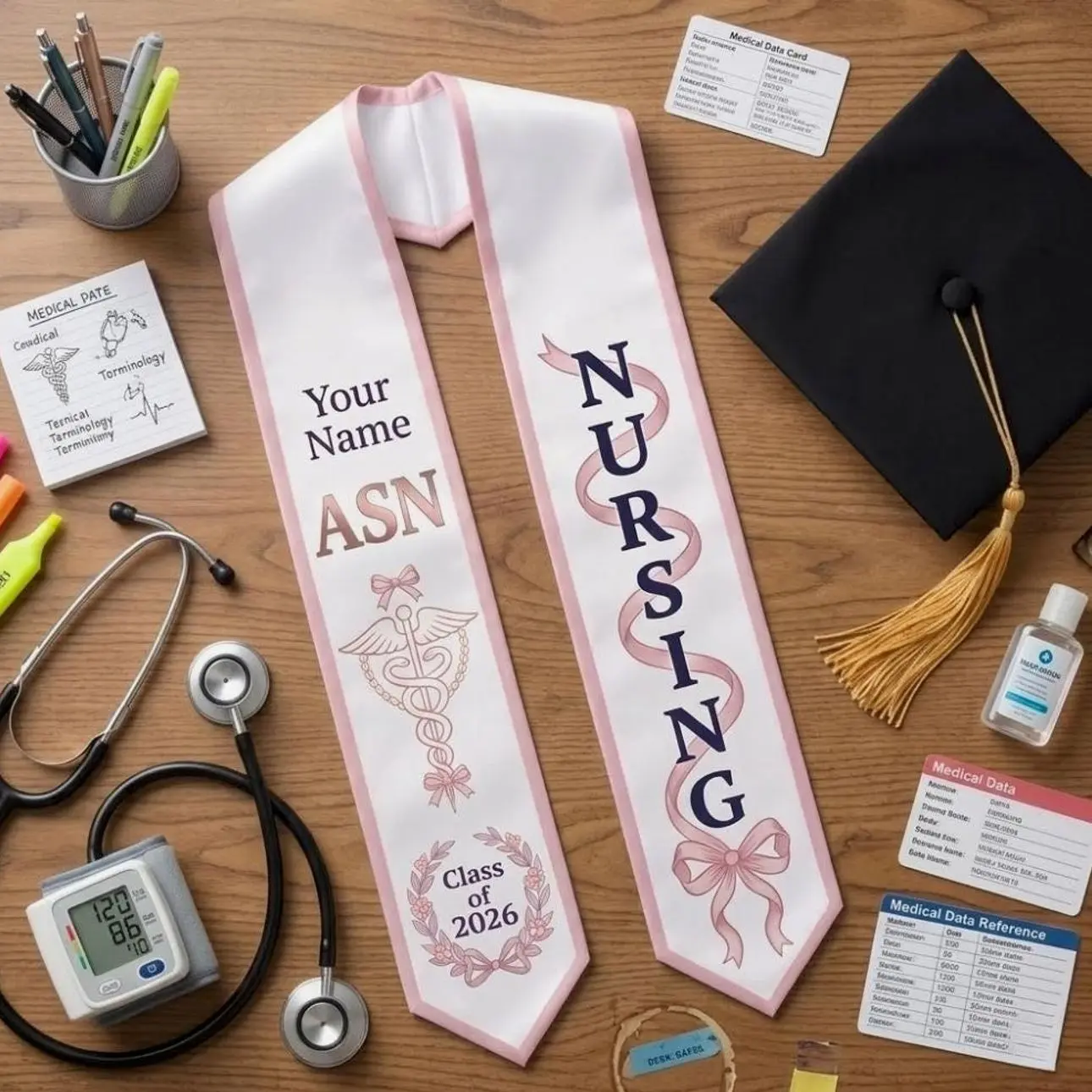 Personalized Nursing Graduation Stole, BSN ASN Grad Stole Class of 2026, Custom Stole, Nursing School Graduation Sash, RN Ceremony Gift
