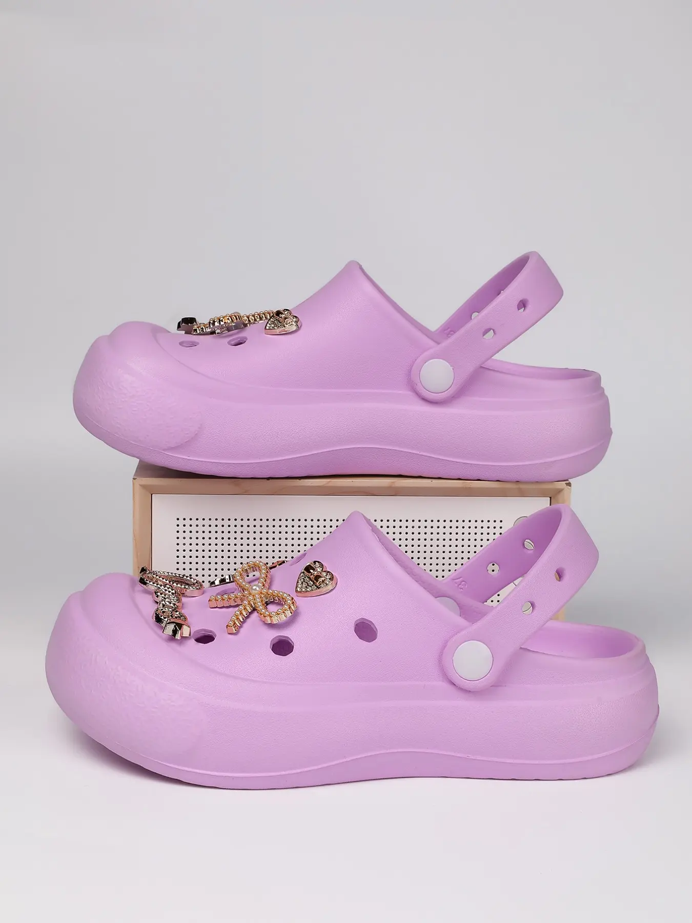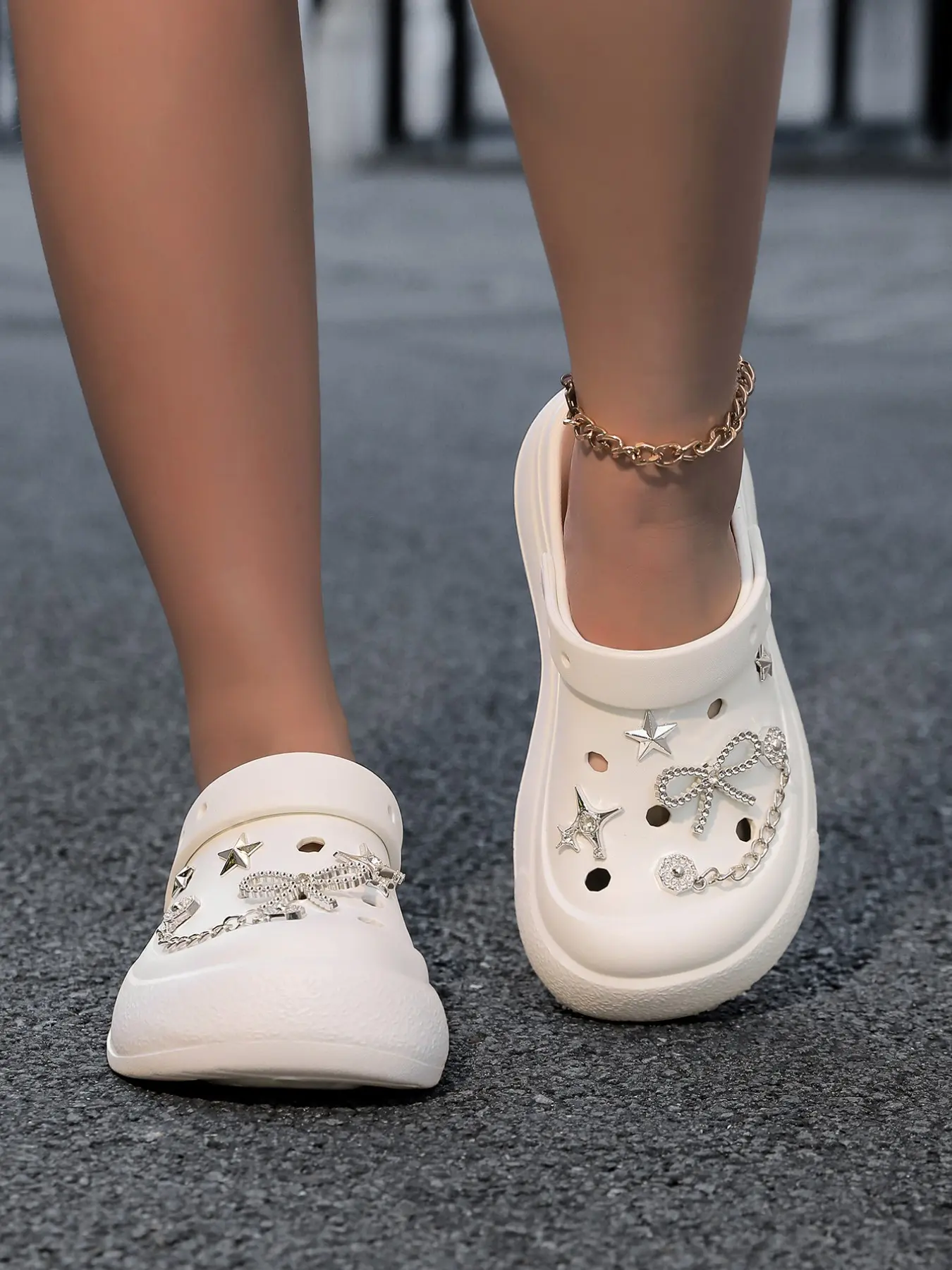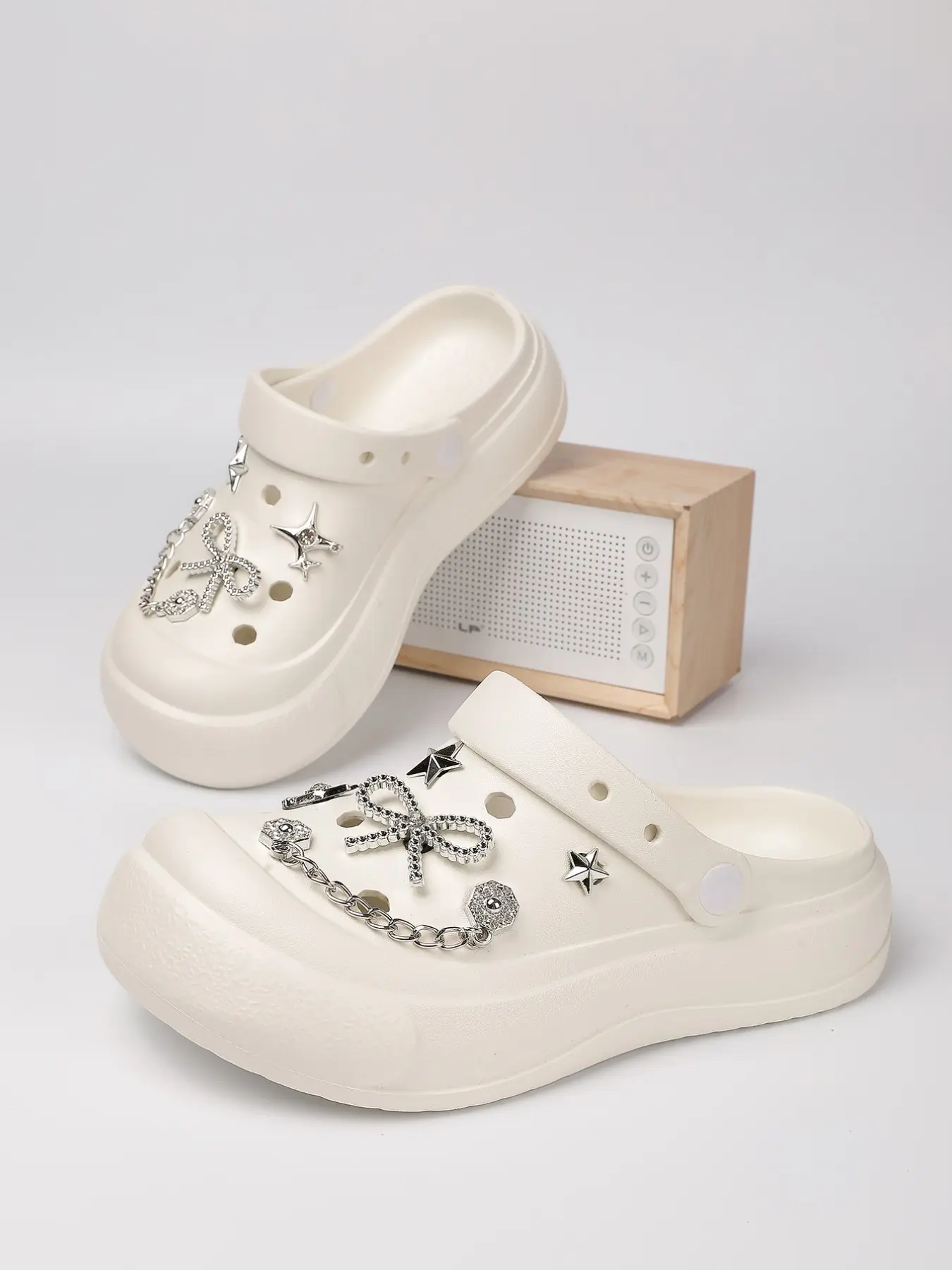Women's Thick Sole Hole Shoes with Rhinestones and Bow, Unique Design Versatile Outdoor Sandals, Comfortable Eva Material for All Seasons