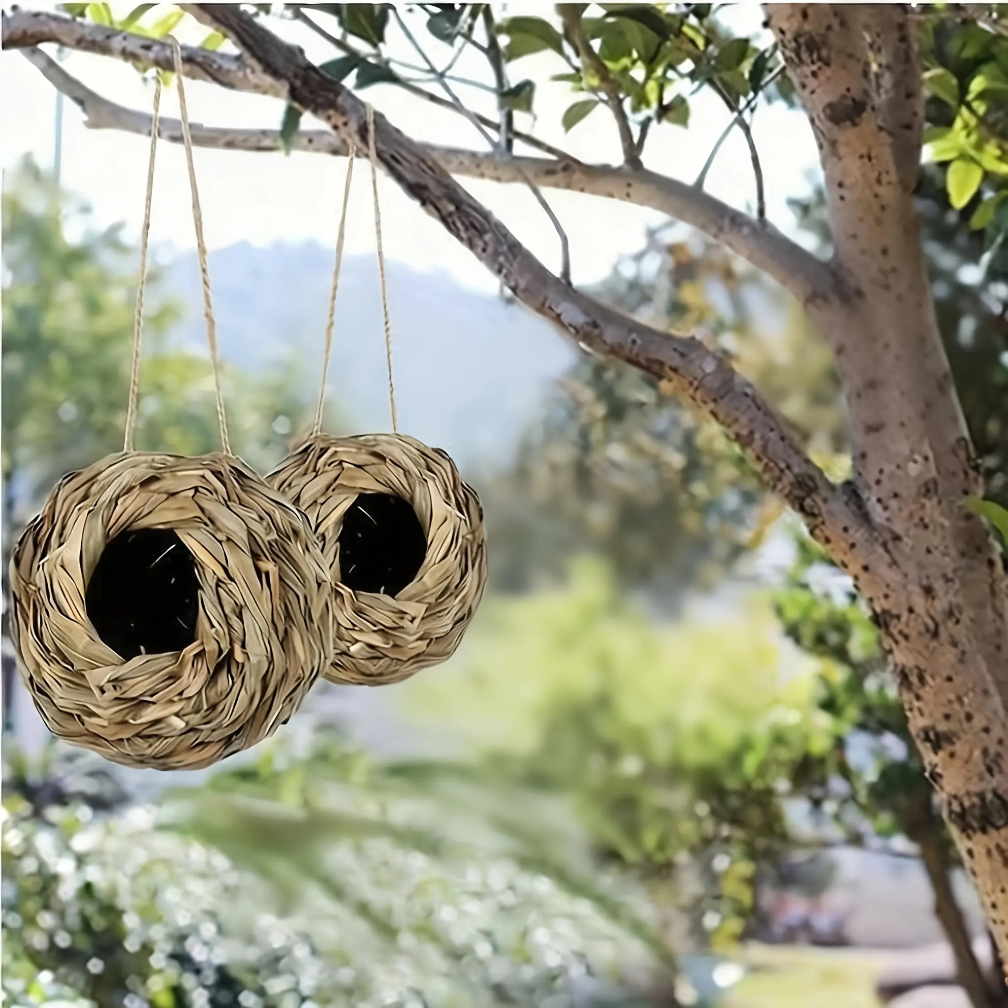 2pcs Handwoven Hummingbird Nest House- Outdoor Gardens And Patios, Spherical Design, Comfortable Nesting
